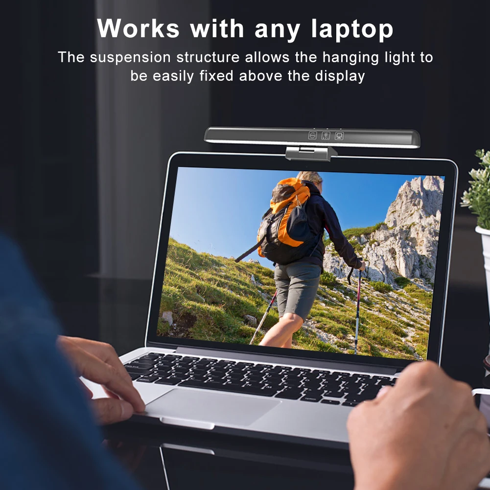 3. Compatibilidad universal con portátiles:La estructura colgante permite montar fácilmente la barra de luz de la pantalla sobre cualquier pantalla de computadora portátil, maximizando el espacio del escritorio y al mismo tiempo proporcionando una iluminación ideal.La barra de luz se puede ajustar 90° arriba y abajo para ángulos de iluminación óptimos.