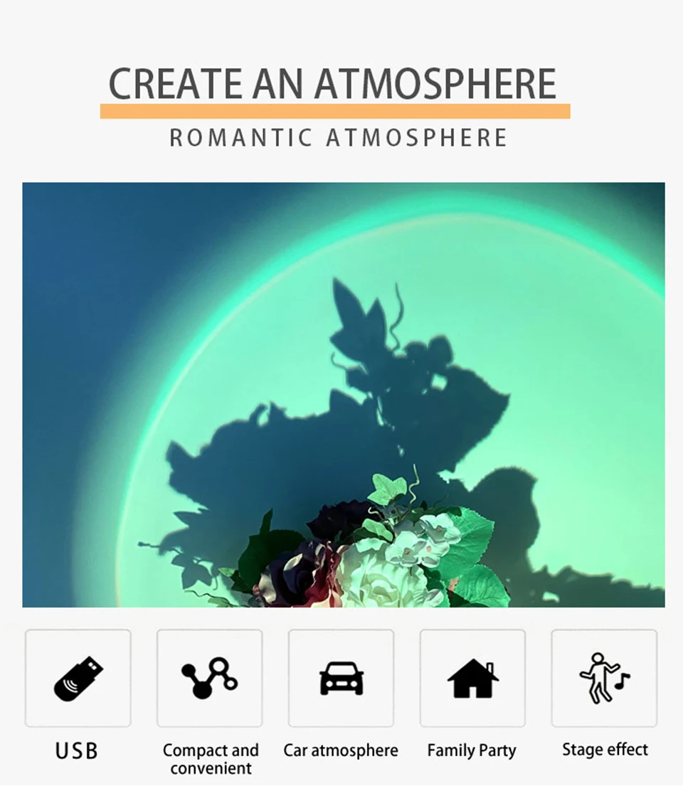 • Proyector fotográfico:Proyecte hermosas fotos de la puesta de sol en su pared o techo para una decoración única y llamativa.