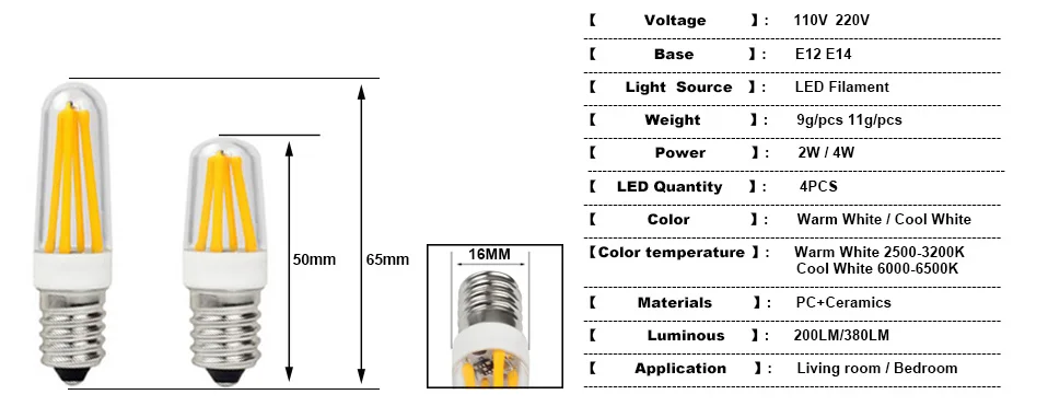 Variante: Emitting Color:Warm White Color:E12 Number of LED Chip:220V Wattage:4W