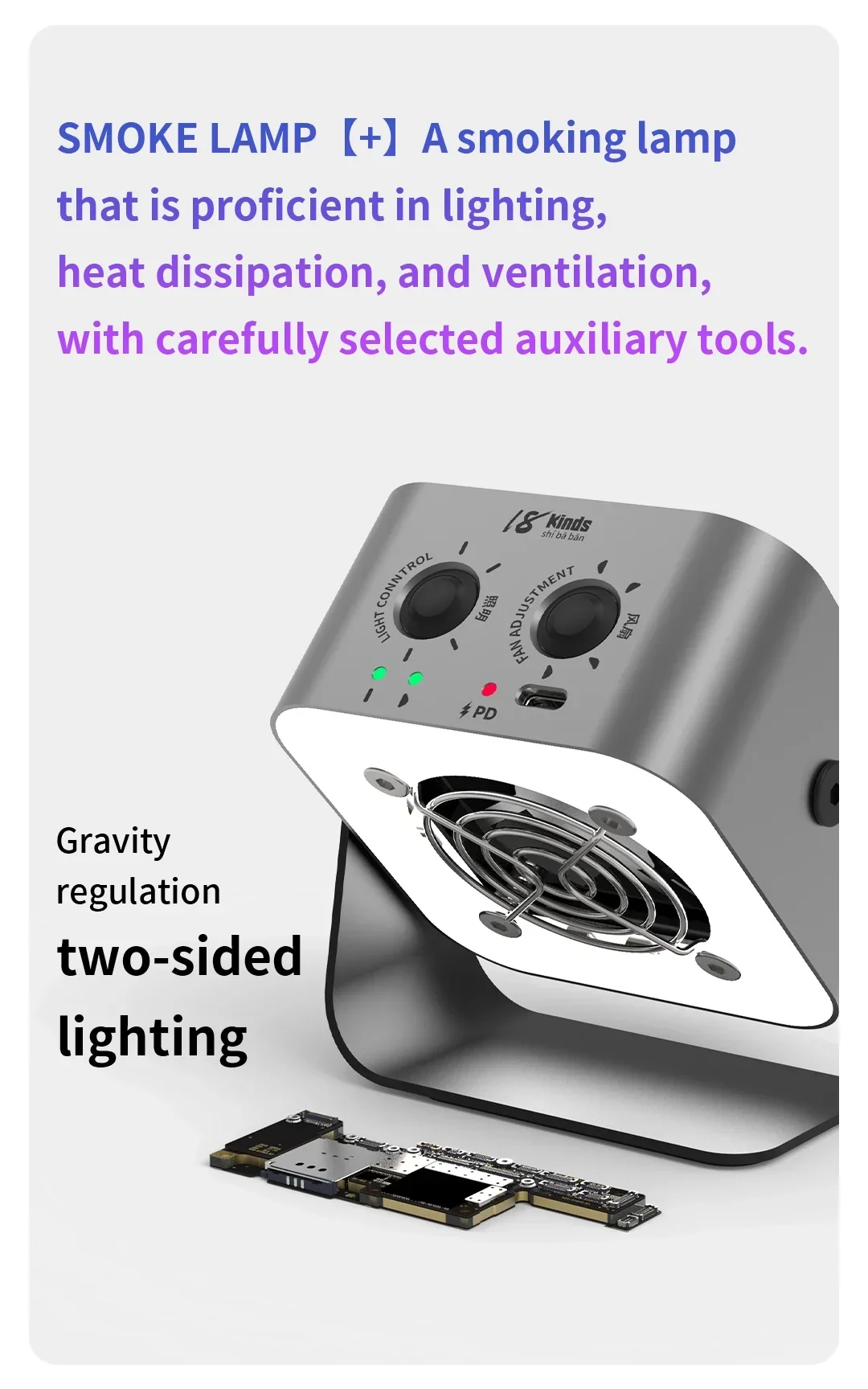 Lámpara de mantenimiento avanzada 3 en 1, 18 tipos, iluminación concentrada, ventilador de escape para fumar, reparación de placa base de teléfono y disipación de calor