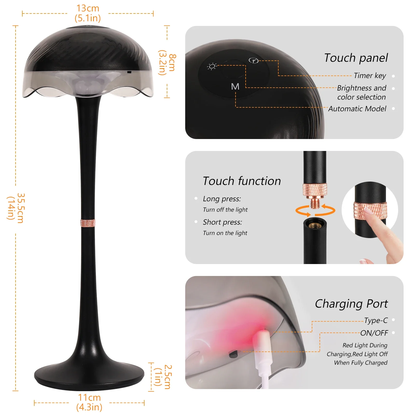 【Batería de duración ultralarga】: la lámpara de escritorio se puede utilizar durante 8-72 horas después de estar completamente cargada.Tiempo de carga: 4-5 horas.