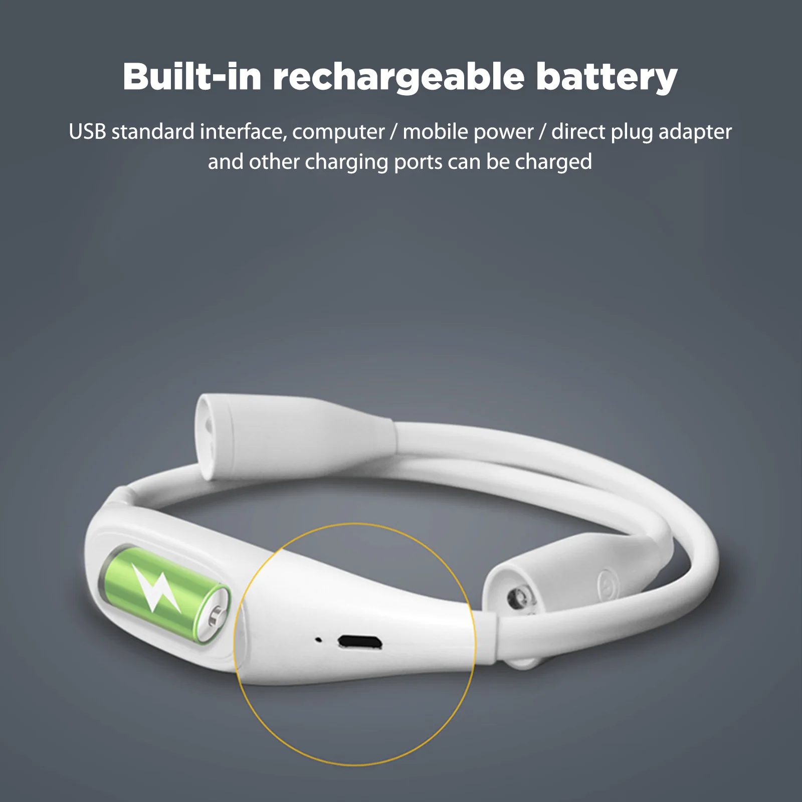 4.Carga USB, completamente cargada durante aproximadamente 3 horas, duración de la batería completamente cargada: 6-20 horas de uso