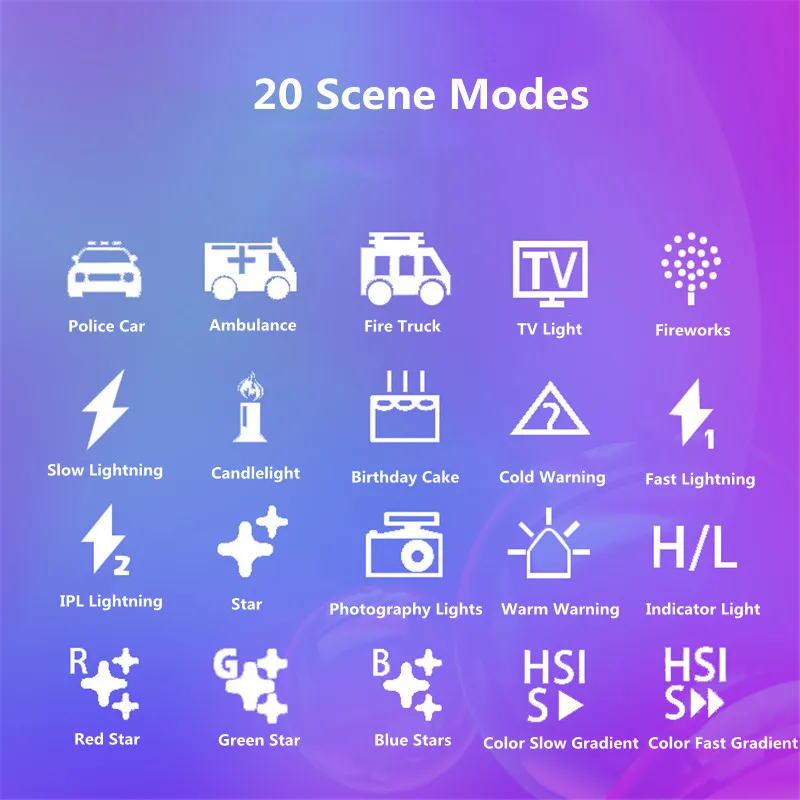 Debido a una variedad de modos de iluminación y docenas de efectos de iluminación RGB, como los modos HSI, da una deslumbrante iluminación gloriosa para el relleno de luz al aire libre, fotografía o transmisión en vivo.