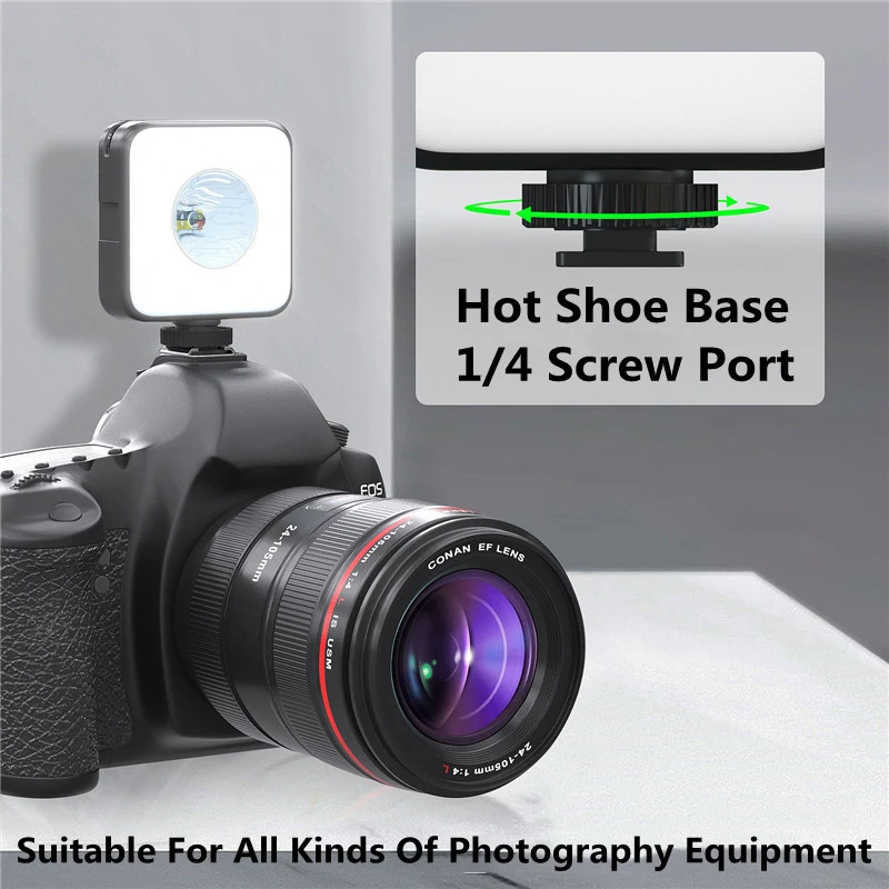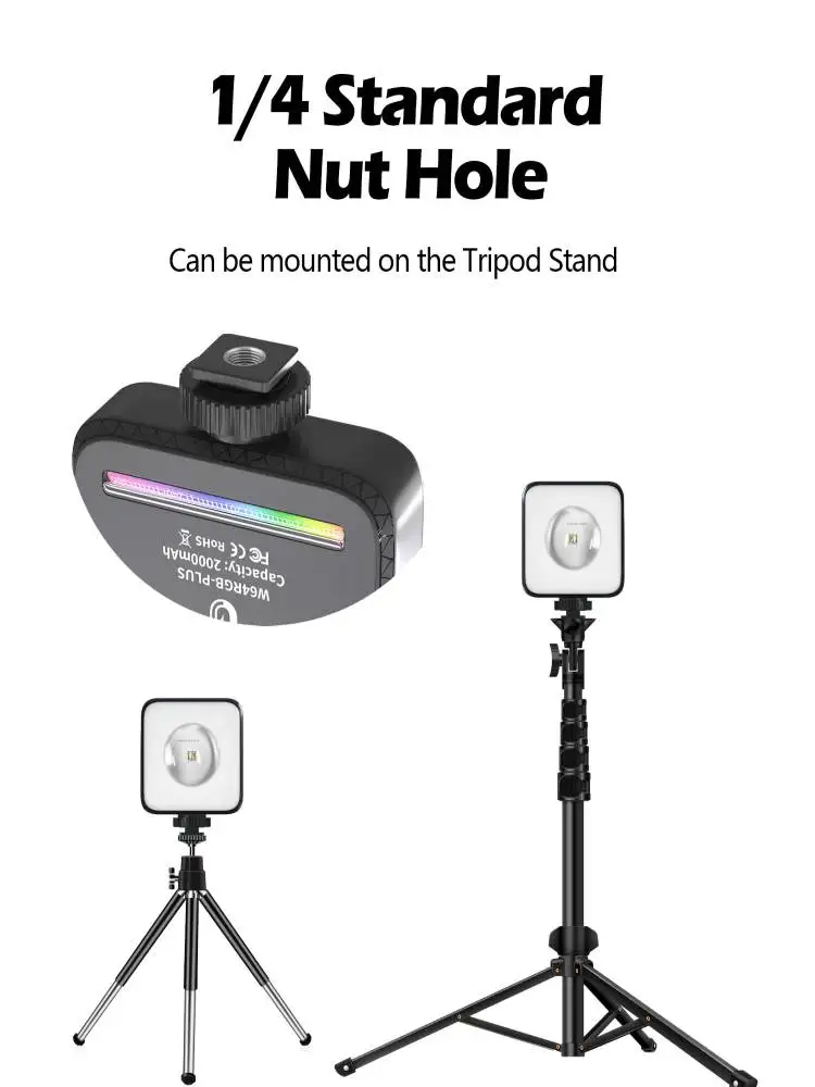 Hay un orificio de tuerca estándar 1/4 en la parte inferior de la luz de video LED RGB, que permite que la luz de video RGB se pueda conectar fácilmente a diferentes soportes de fotografía para fotografía al aire libre, relleno de luz.