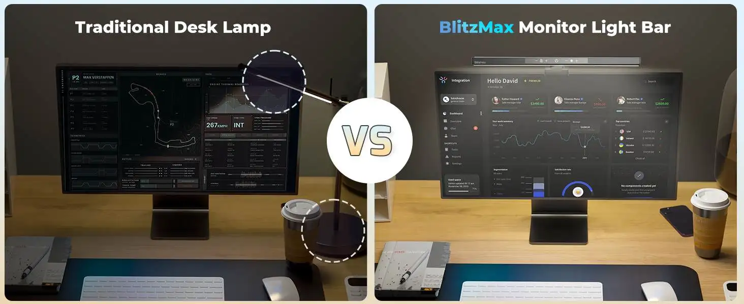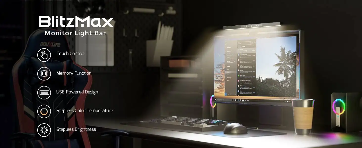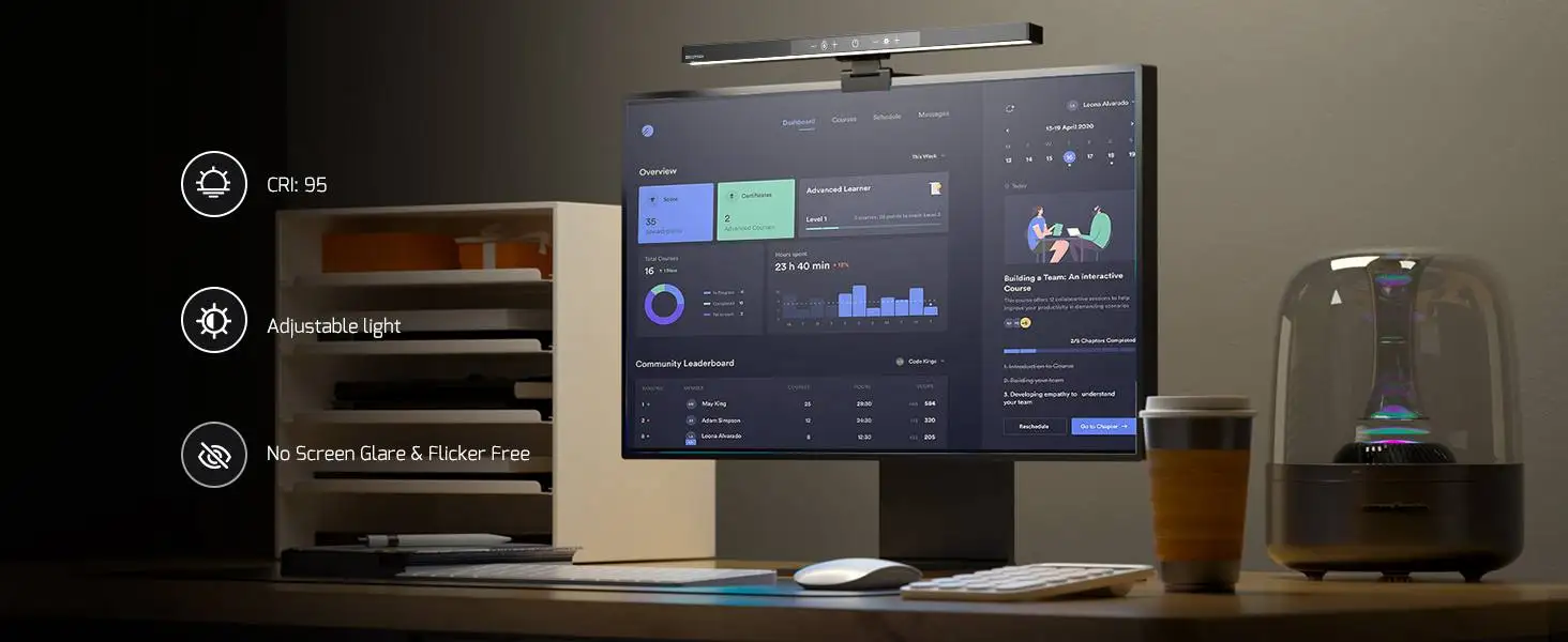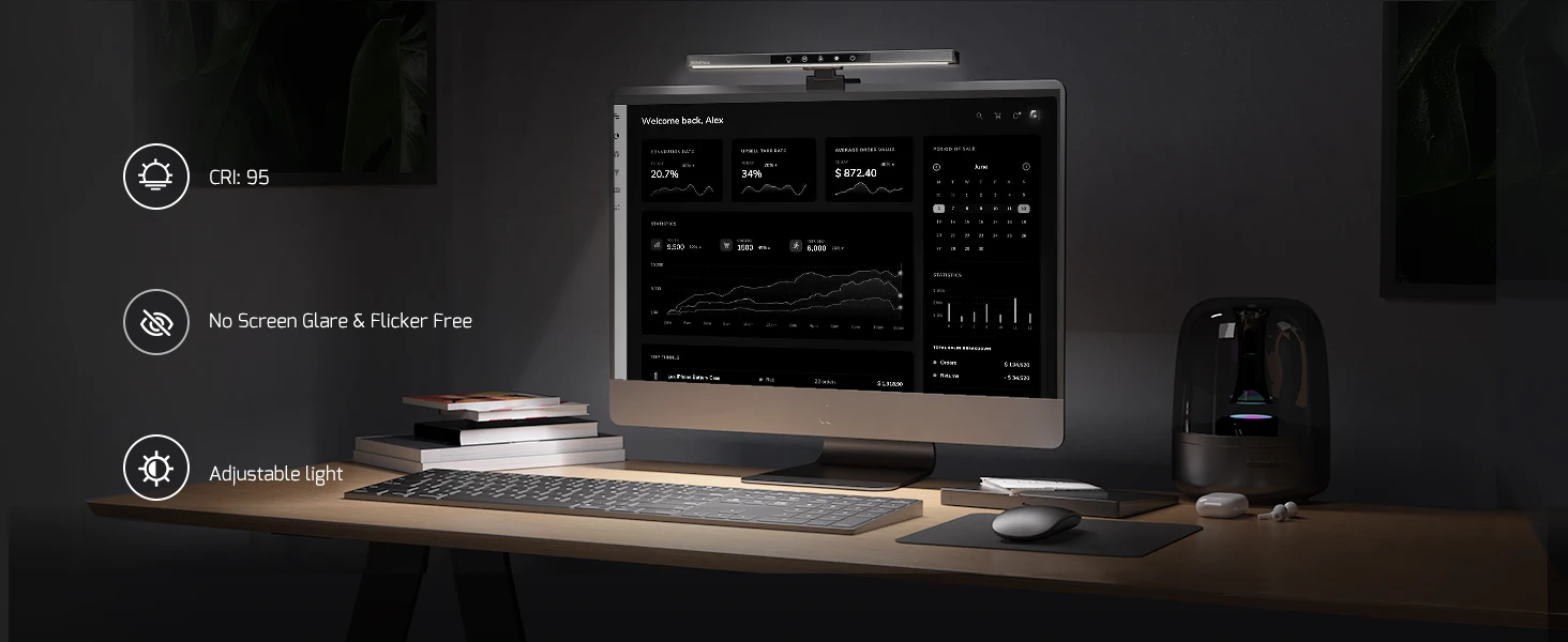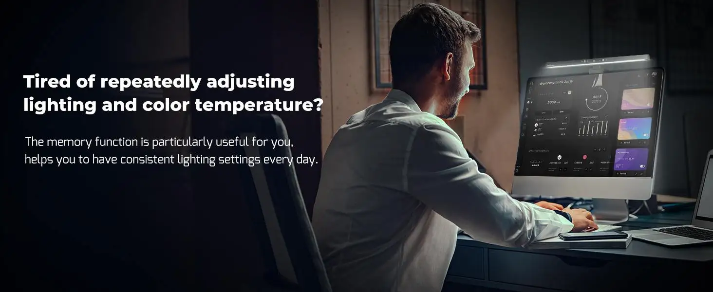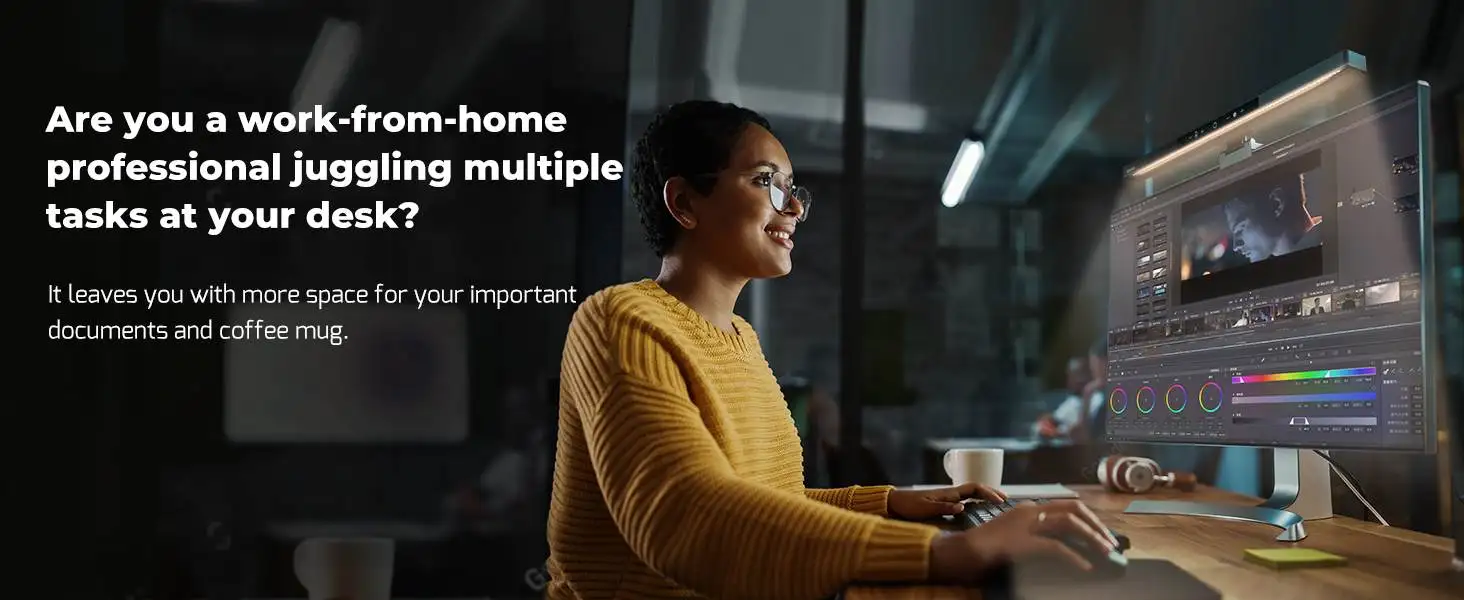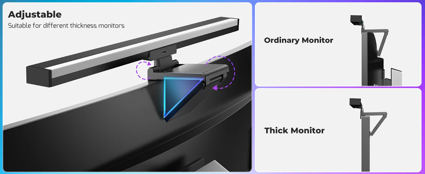 -【Diseño que ahorra espacio】 El diseño elegante y compacto de la barra de luz se adhiere directamente a su monitor, ahorrando un valioso espacio en el escritorio.