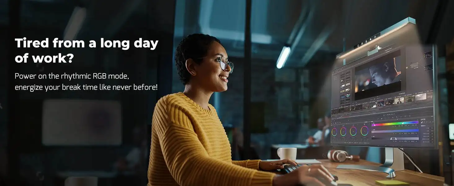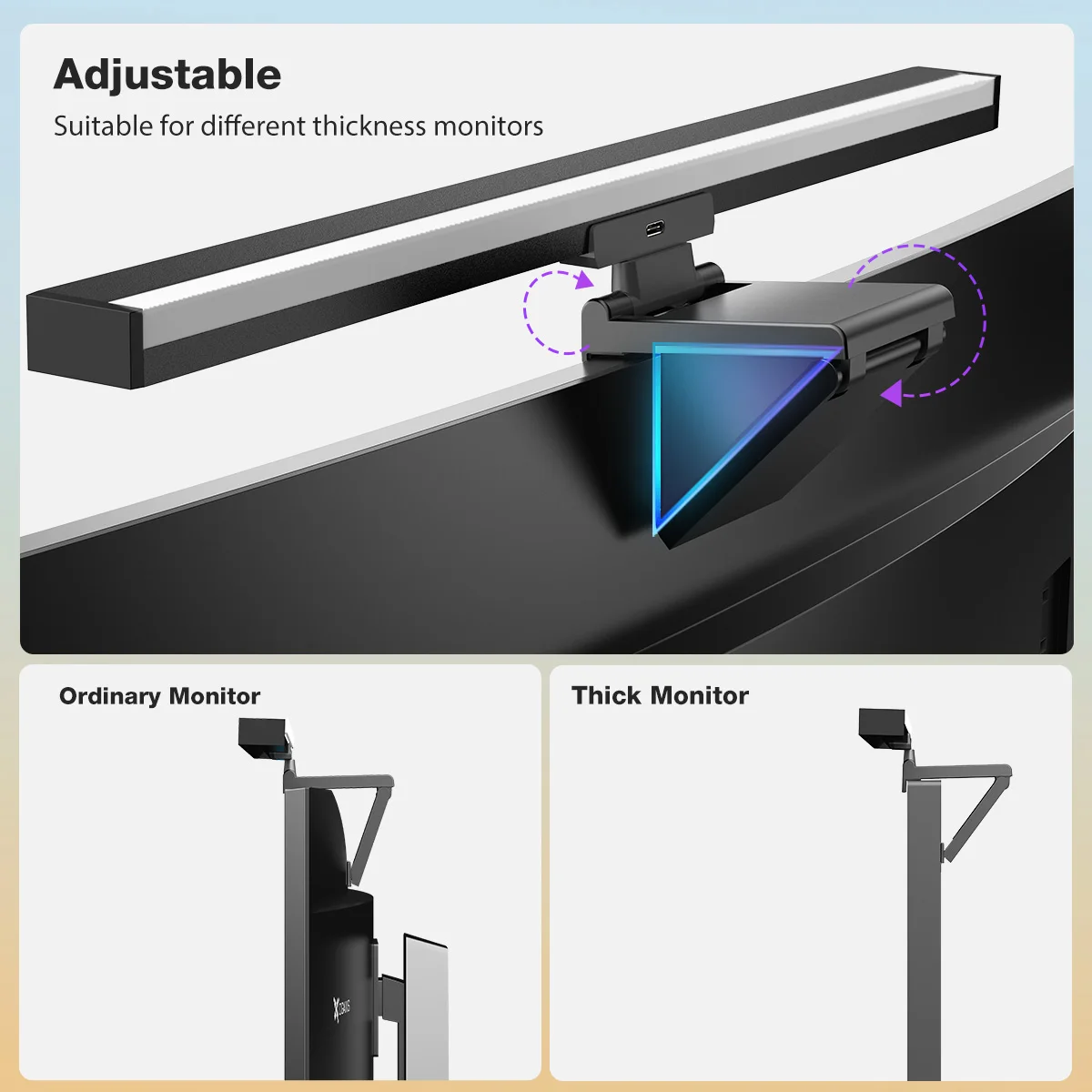 -【Iluminación personalizada】: Atiende a su comodidad visual con 5 niveles de brillo y 3 temperaturas de color (ocio de 3000K, lectura de 4500K, modo de trabajo de 6000K). Nuestra barra de luz reduce eficazmente el deslumbramiento de la pantalla y la fatiga ocular, mejorando su tiempo de pantalla.