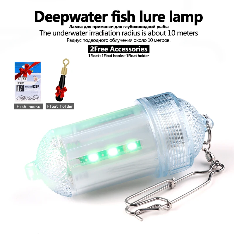 Comprar Lámpara de señuelo para peces de aguas profundas, 1 bolsa de ganchos, 1 asiento de boya, aparejos para atraer peces, lámpara LED, cuentas para atraer la luz, aparejos de herramientas de pesca, 1 ud.