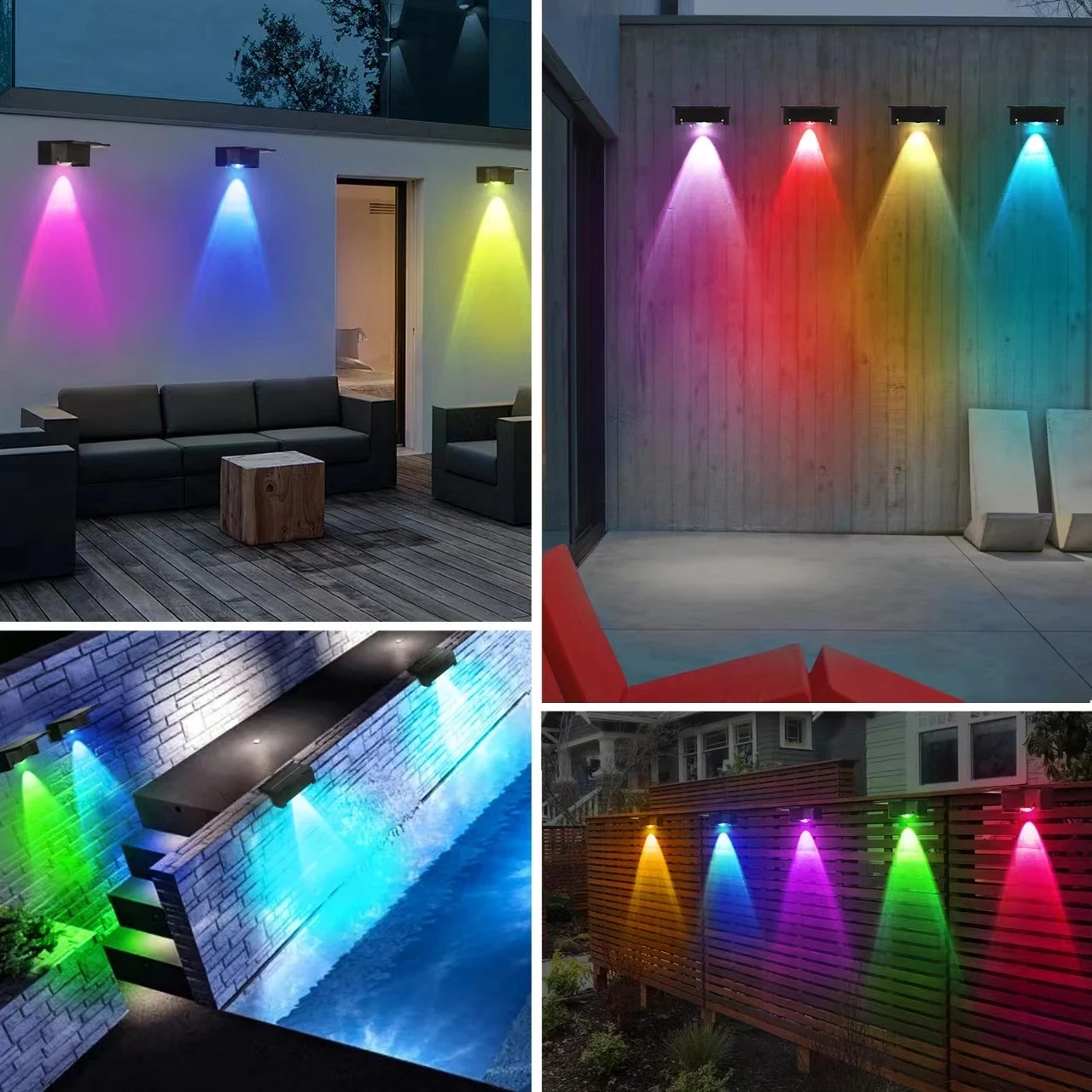 Lámpara de pared solar, luces para patio, cubierta, piscina, ajuste de 12 velocidades, modo de Control de luz Multicolor, luz ambiental de flexibilidad, impermeable al aire libre