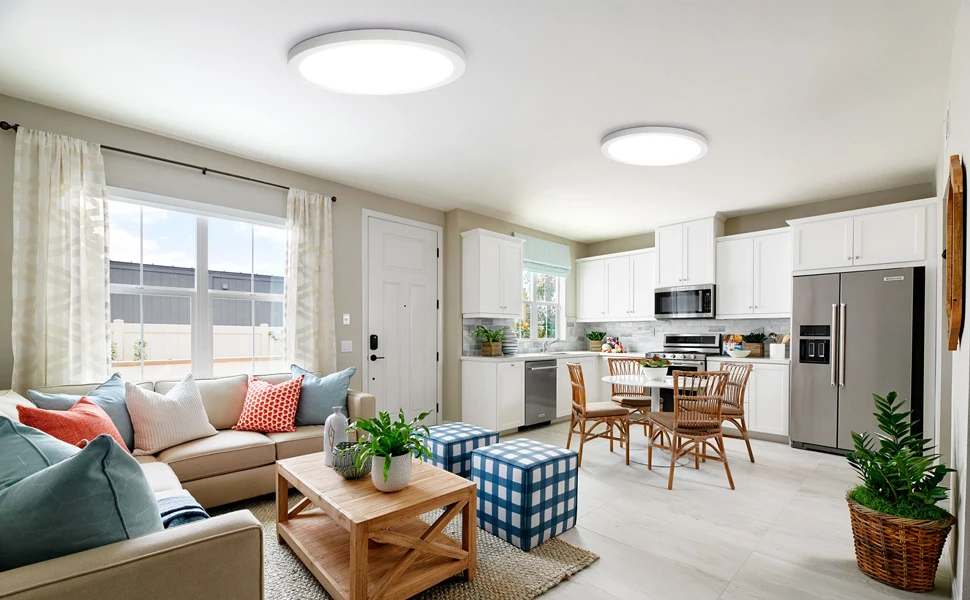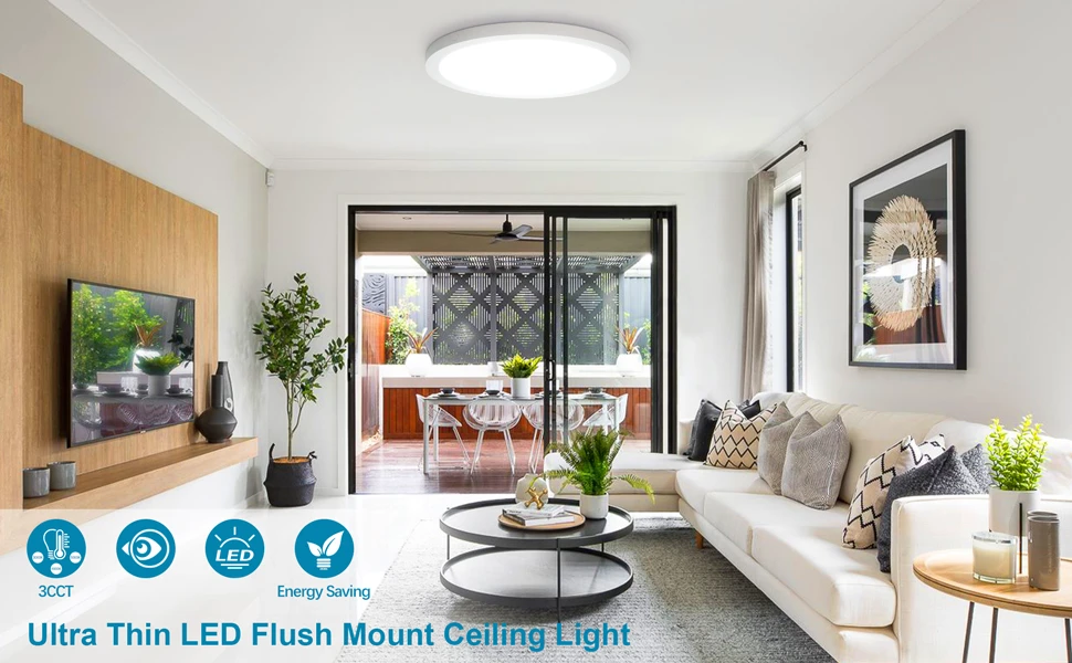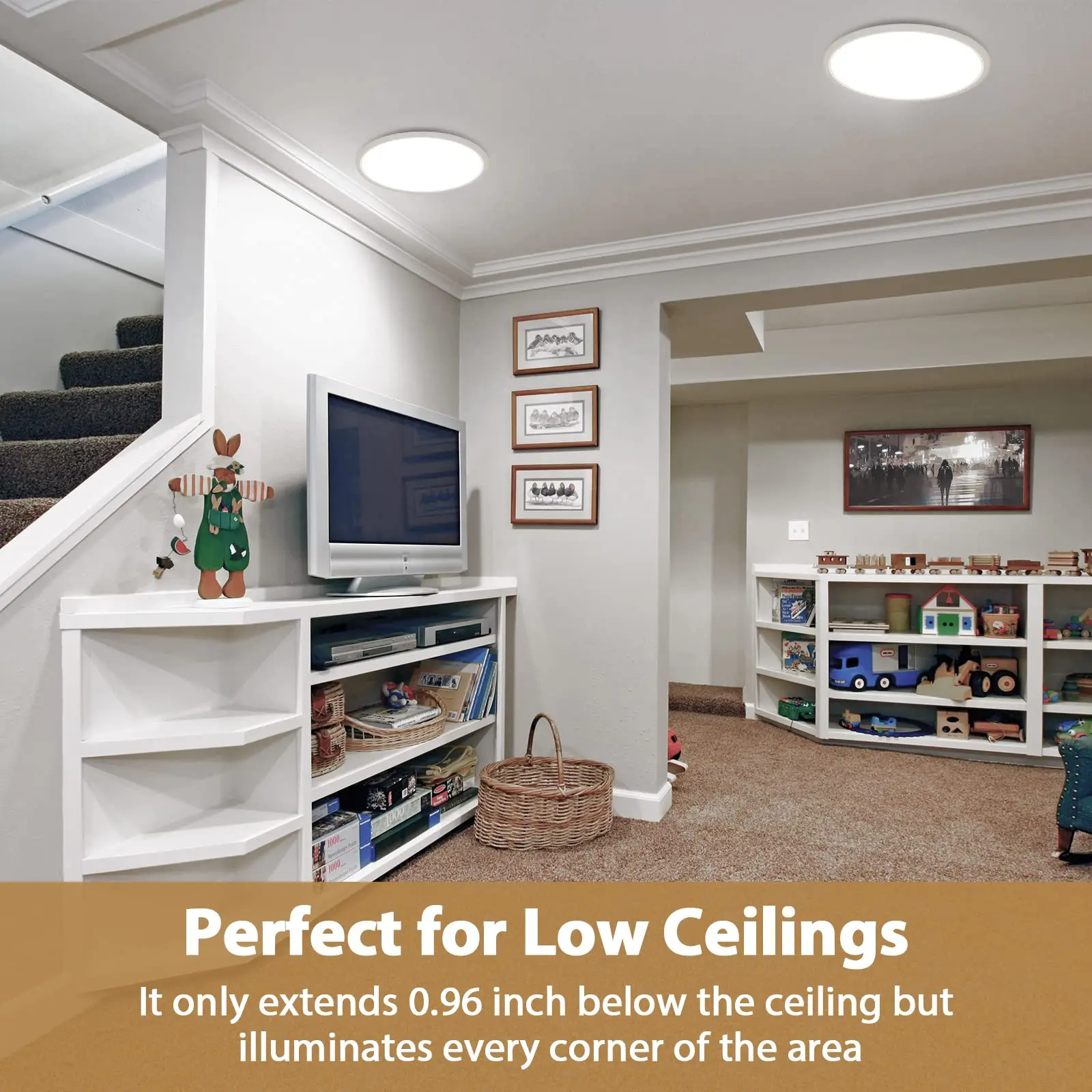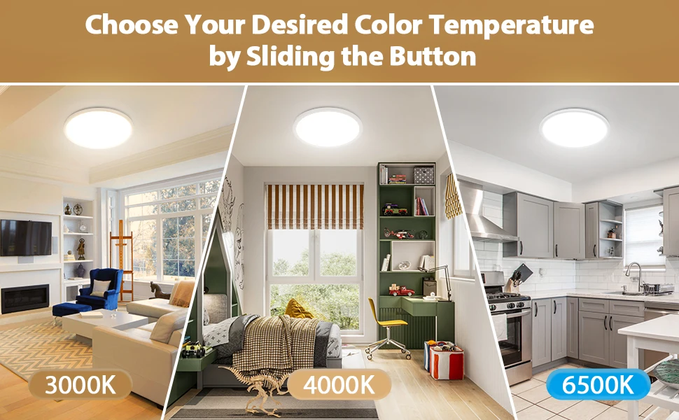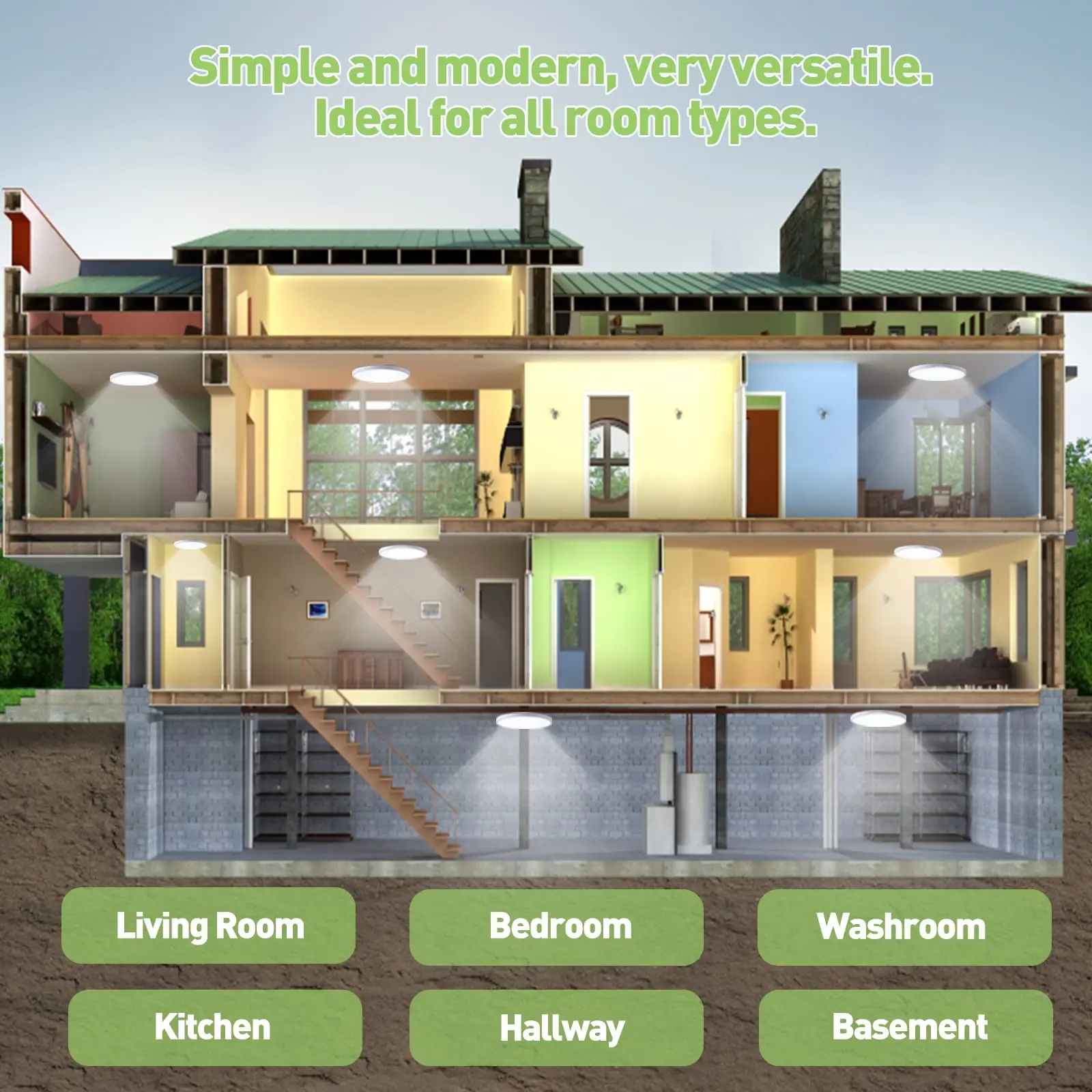 3. Fácil de instalar. Conectado directamente a la red eléctrica de 220V, sin necesidad de conversión de voltaje. Luz LED de techo de bajo perfil de 3 tamaños diferentes, solo 2 pasos para completar la instalación. Instale la base debajo del techo, inserte la luz en la base y listo. Se adapta a diferentes estilos de hogar.