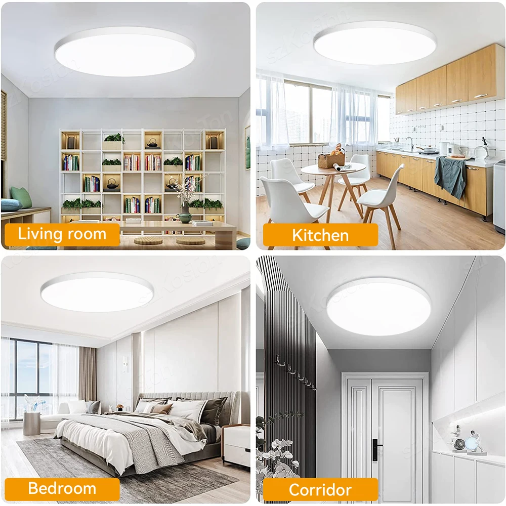 3. Fácil de instalar. Conectado directamente a la red eléctrica de 220V, sin necesidad de conversión de voltaje. Luz LED de techo de bajo perfil de 3 tamaños diferentes, solo 2 pasos para completar la instalación. Instale la base debajo del techo, inserte la luz en la base y listo. Se adapta a diferentes estilos de hogar.