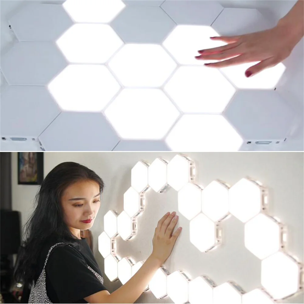 Comprar Lámparas hexagonales sensibles al tacto, luz nocturna LED Modular cuántica, Hexagonal, decoración creativa, lámpara de pared, nuevo