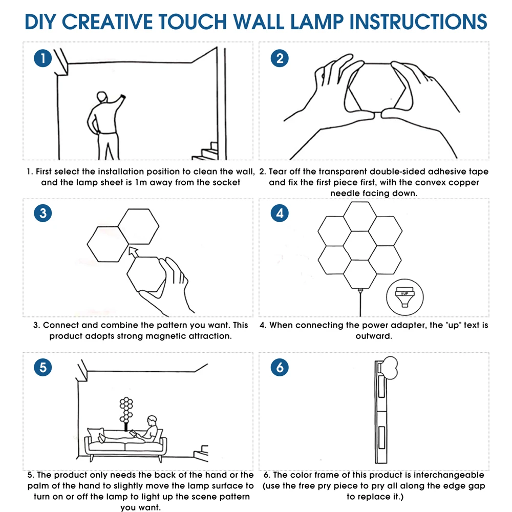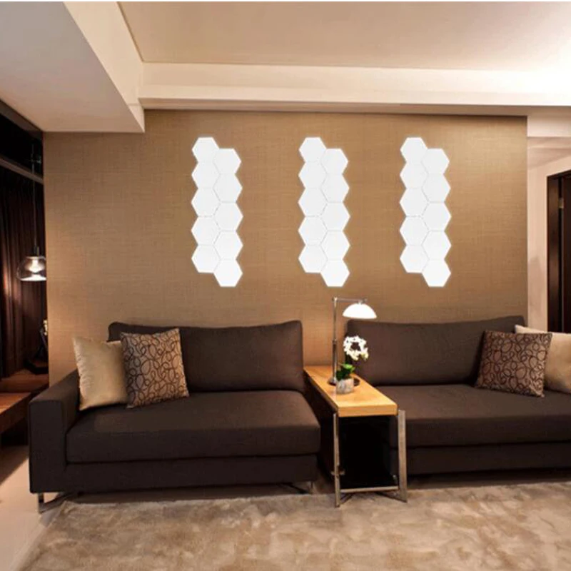 Materiales de pantalla de ABS y PC de alta calidad, luz uniforme y fuerte transmisión de luz. El tacto físico puede encender y apagar la luz de la pared. Cuando el cuerpo del usuario toca la superficie, el sensor capacitivo actúa como un interruptor para abrir o cerrar cada componente. Los componentes se pueden empalmar fácilmente mediante un imán ubicado en el borde del producto. La forma hexagonal permite que estos componentes se aniden juntos y brinda oportunidades para una variedad de estructuras diferentes. Diseño geométrico único, no solo se puede iluminar, sino que también puede decorar su casa. Ampliamente utilizado, se puede colocar en la sala de estar, dormitorio, estudio, restaurante, hotel, etc.