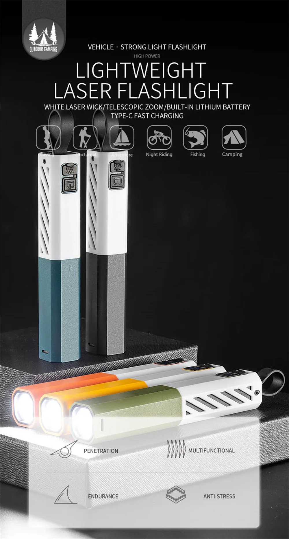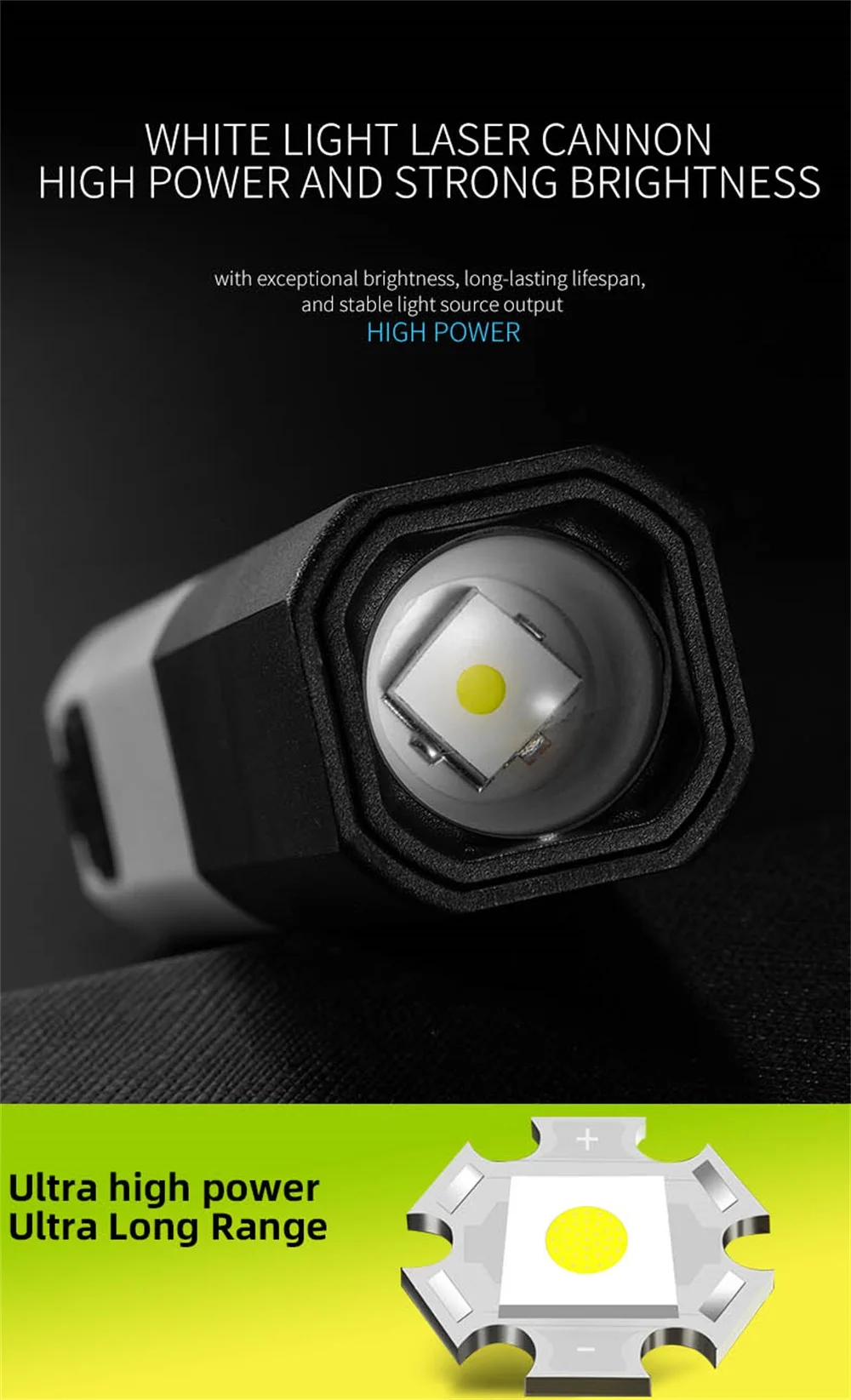 Lampes de poche Led à Zoom Super lumineux, Zoom télescopique, Mini lampe de poche Rechargeable, étanche, haute puissance, Laser