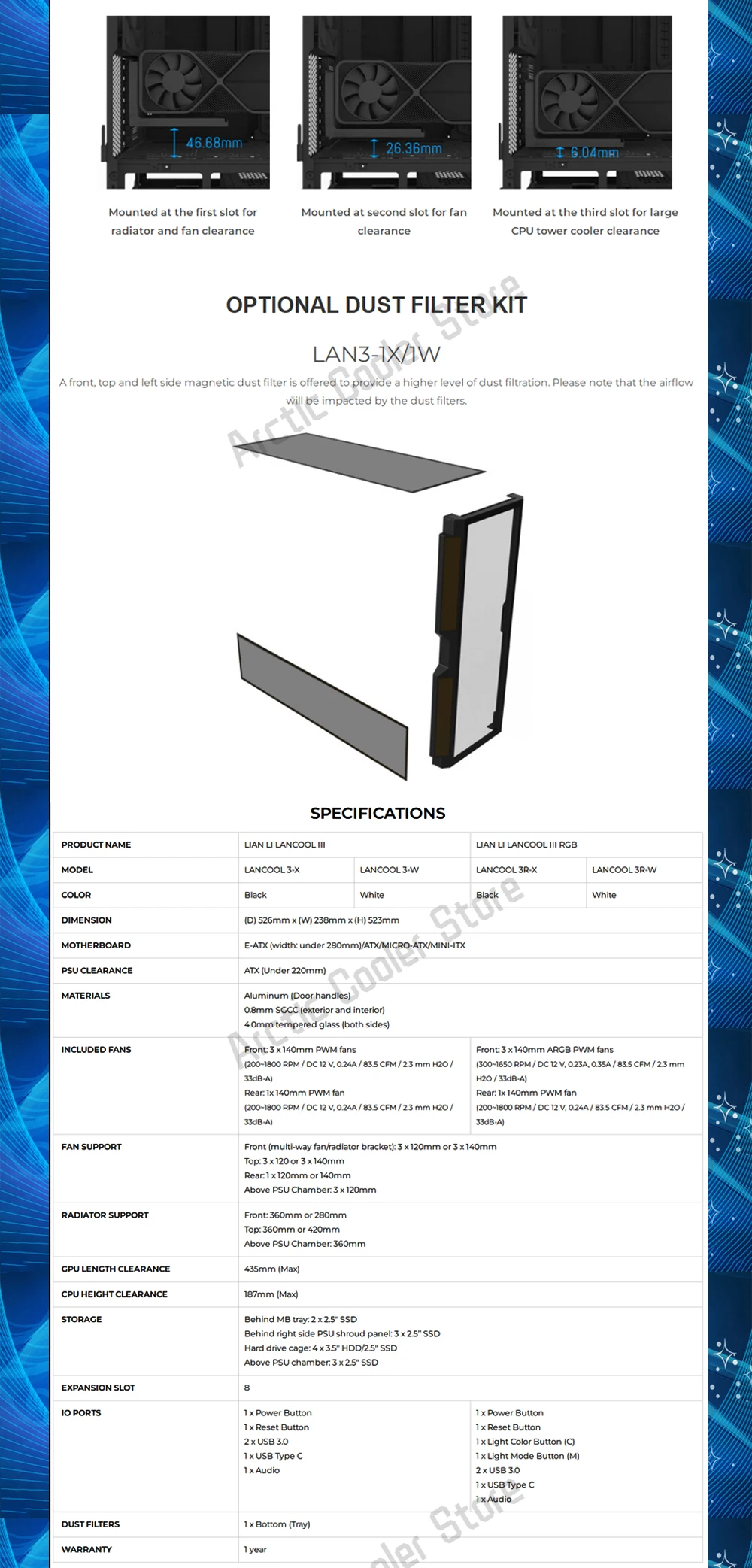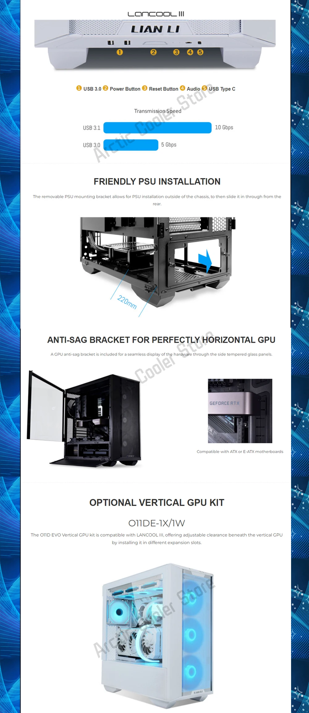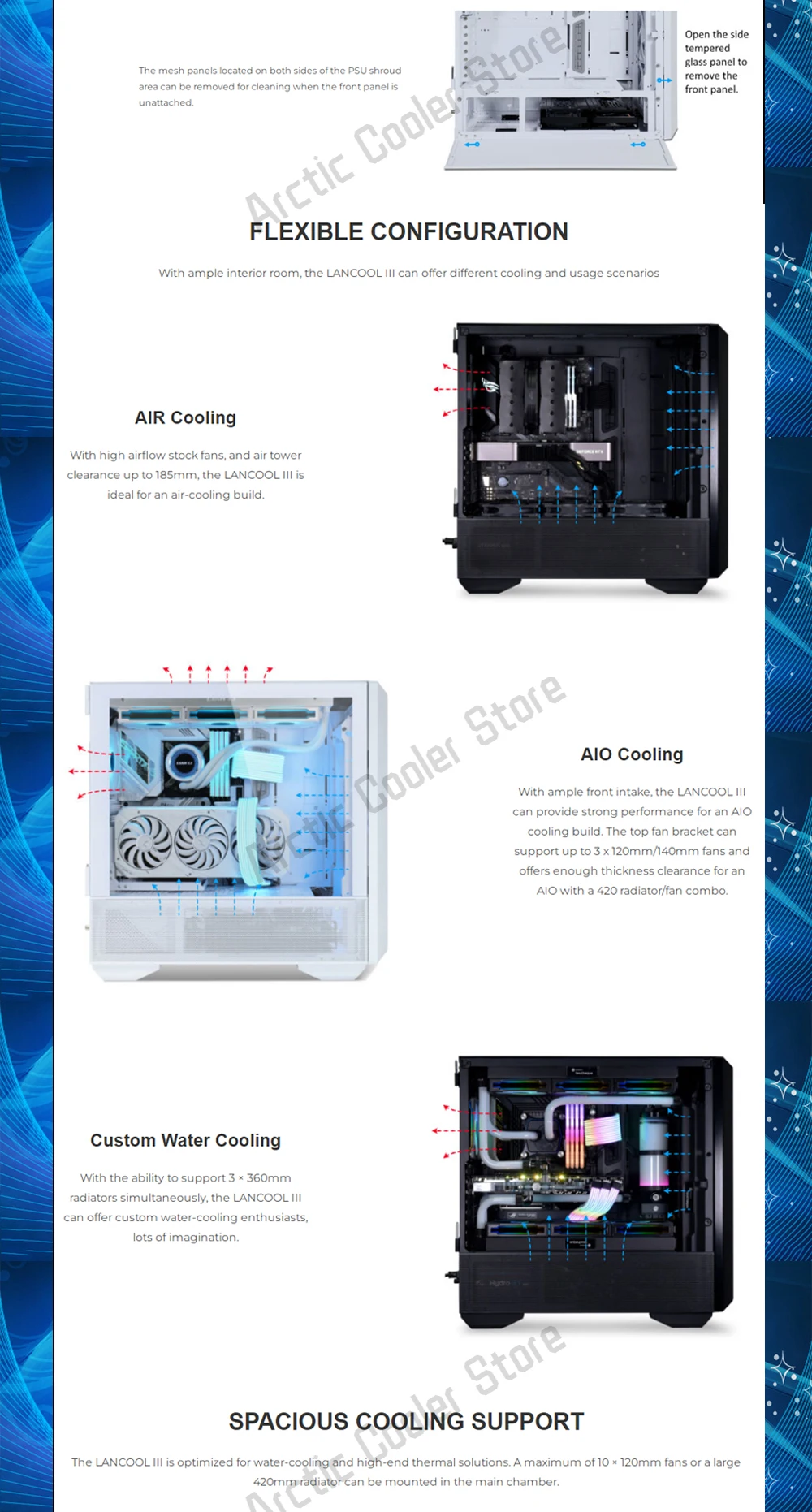 Comprar LANCOOL III-carcasa de ordenador de flujo de aire, gabinete de juegos de modelado para PC con ventiladores PWM de 4 × 140, compatible con radiador 420/radiadores 3x360