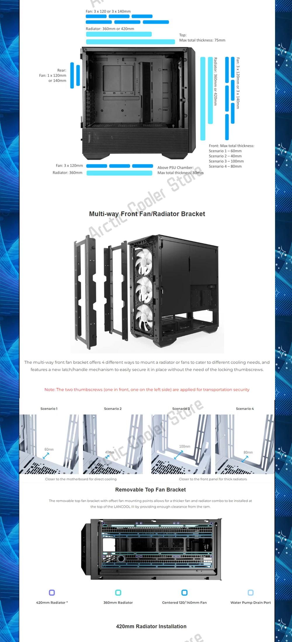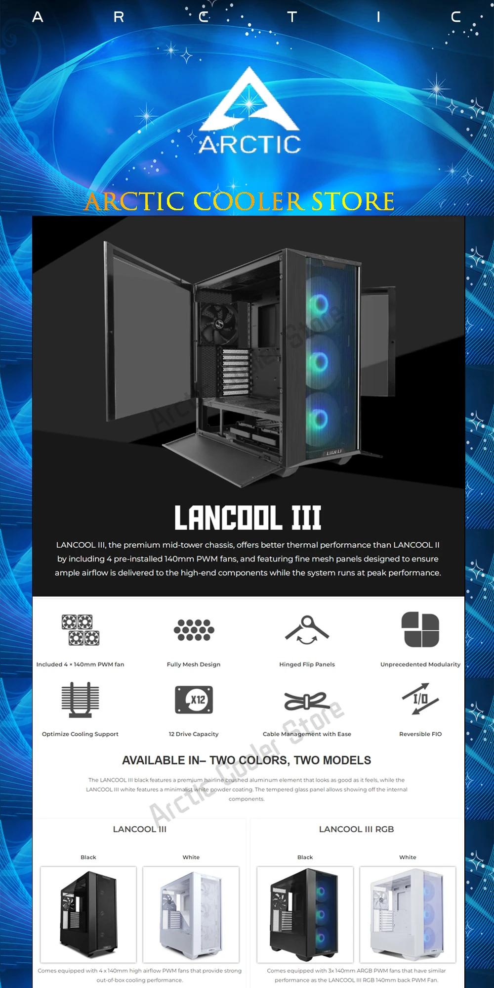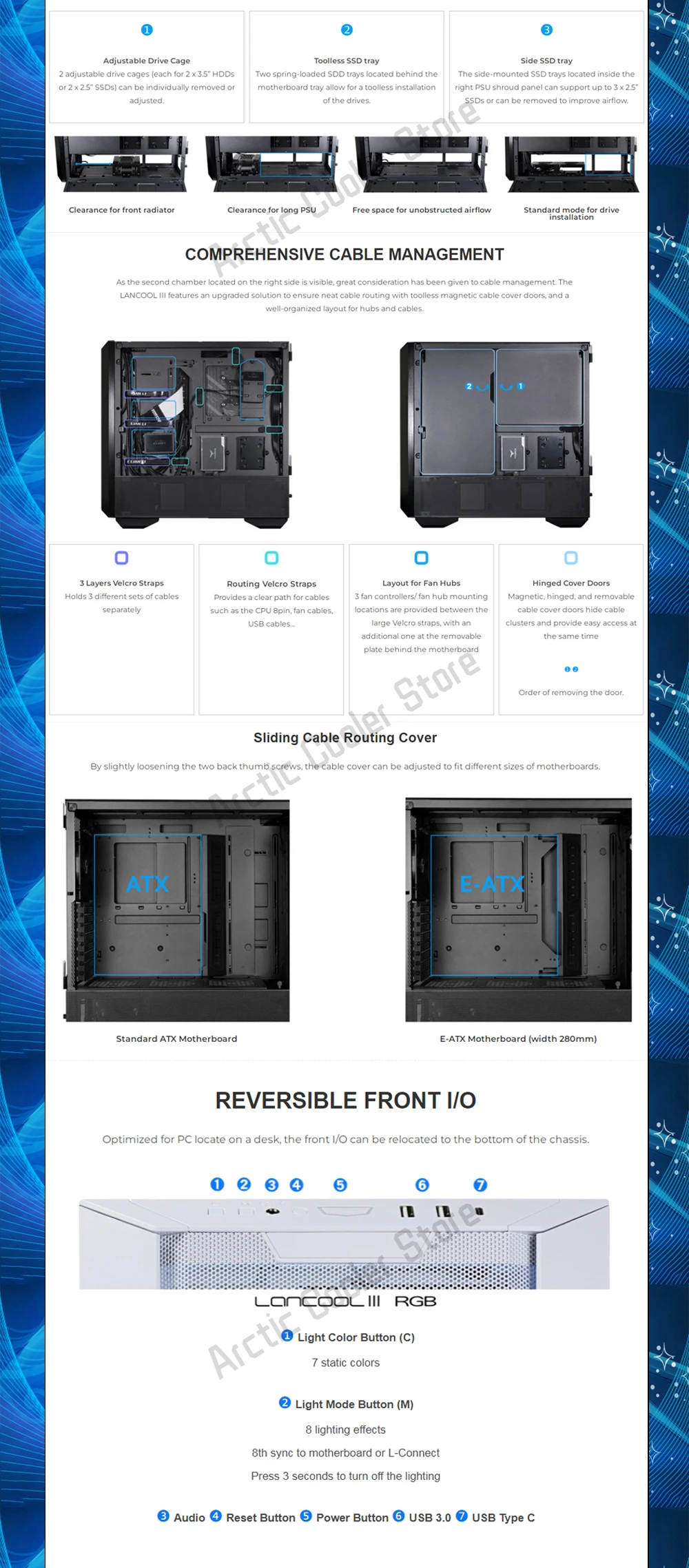 Comprar LANCOOL III-carcasa de ordenador de flujo de aire, gabinete de juegos de modelado para PC con ventiladores PWM de 4 × 140, compatible con radiador 420/radiadores 3x360