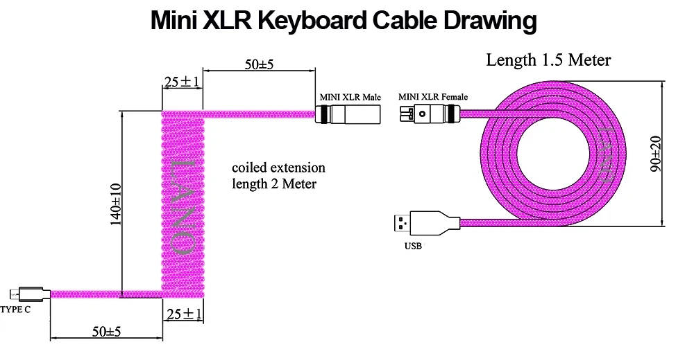 Comprar LANO-Cable en espiral tipo C Mini Xlr, Cable de teclado Flexible para juegos de PC con conector de aviación, Cable Keyborad en espiral