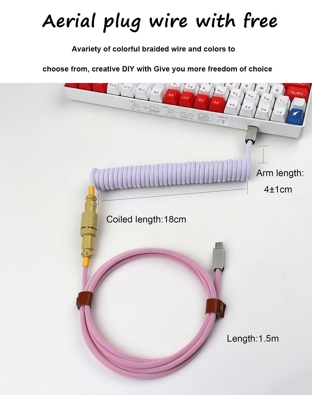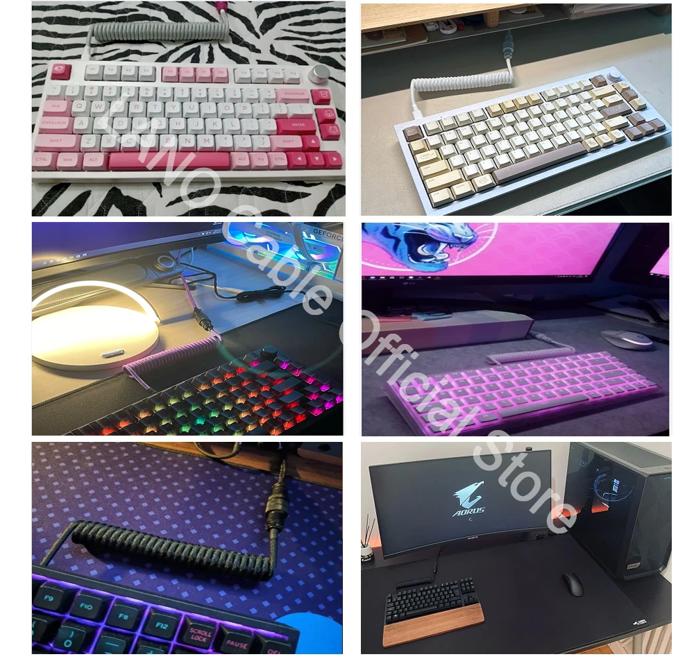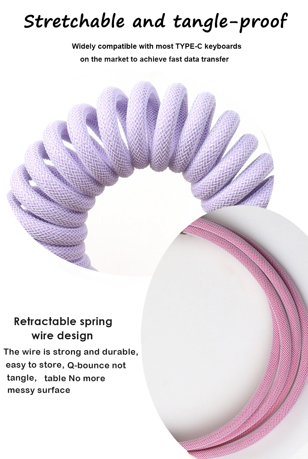 1. El Cable de teclado en espiral tiene varias configuraciones de color llamativas, que pueden proporcionar elementos más interesantes para la configuración de su escritorio.