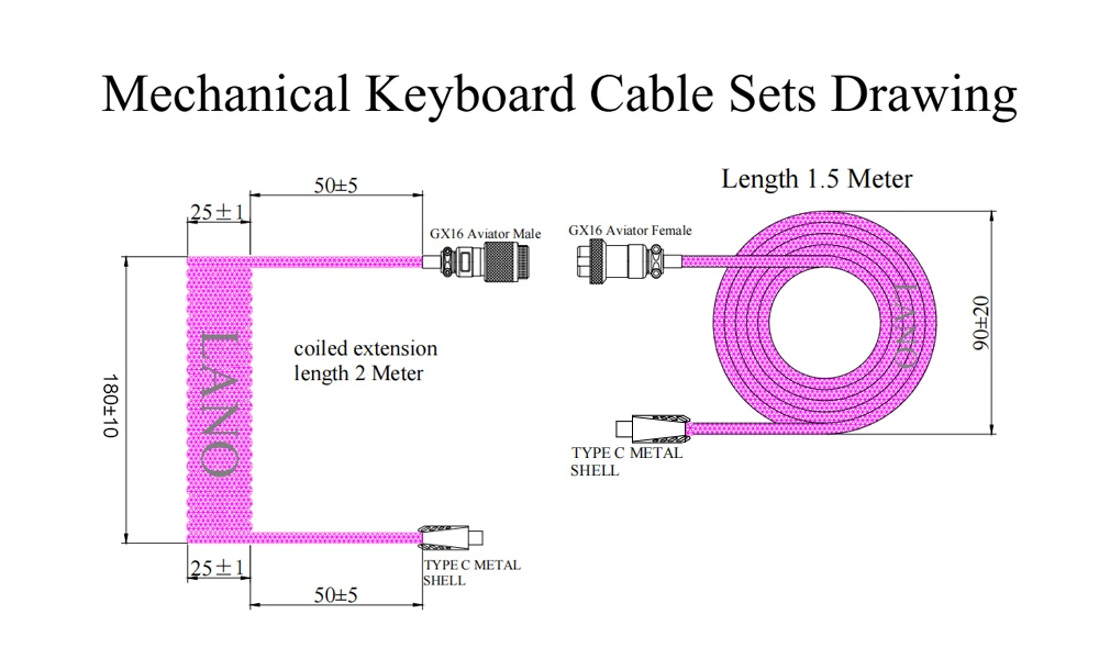 LANO USB C A USB C Teclado mecánico Coilde Cable Aviator Conector Metal Tipo C Interfaz de cable Regalos para Gamer