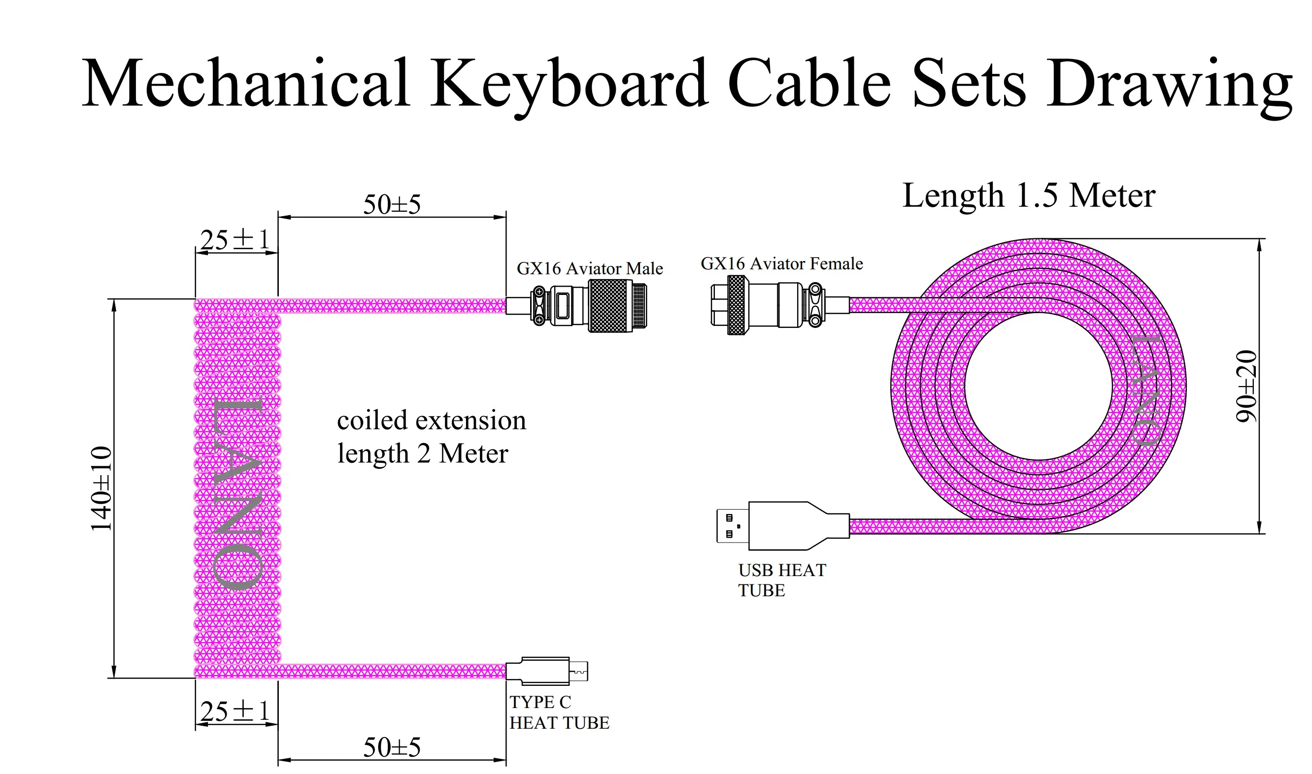 LANO 42 Choices Cable en espiral Tipo C Teclado mecánico Cable de Aviador Computadora de escritorio personalizada Conector de aviación Cable Paracord