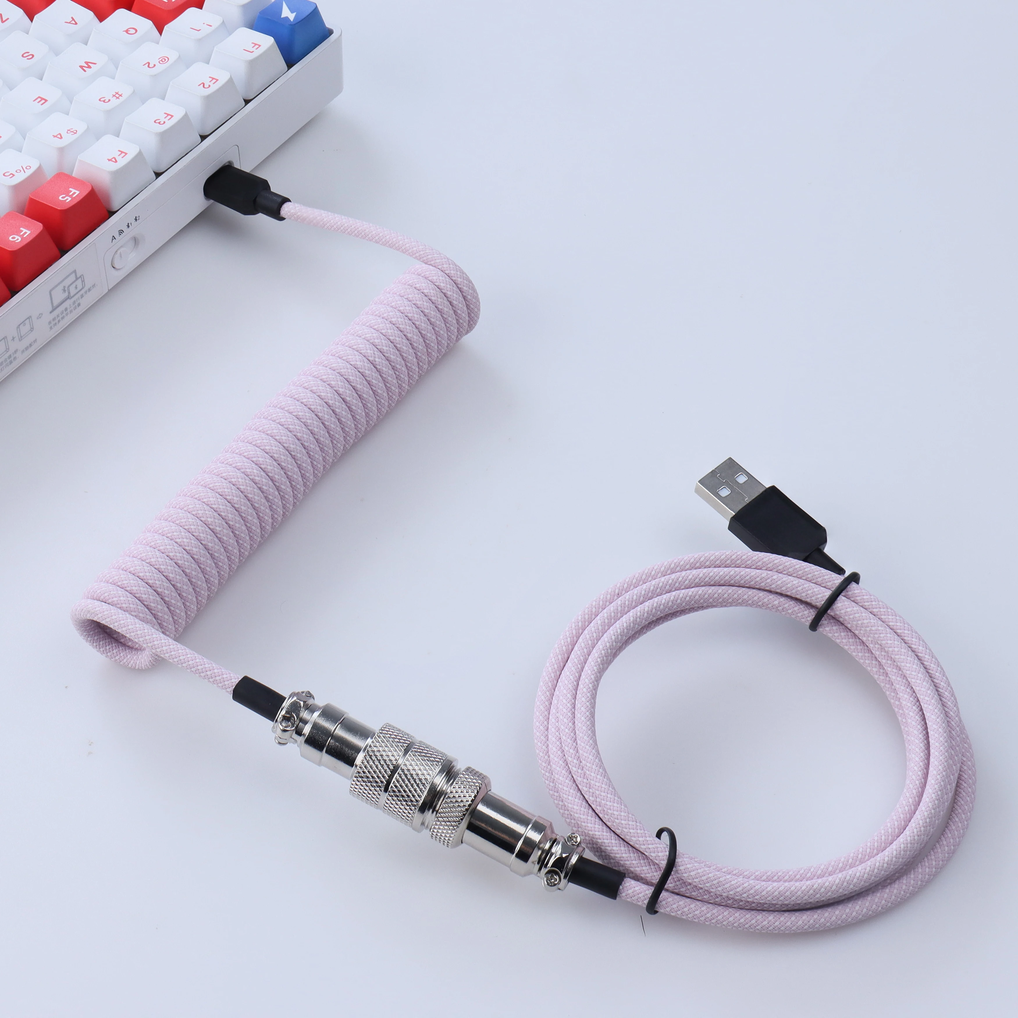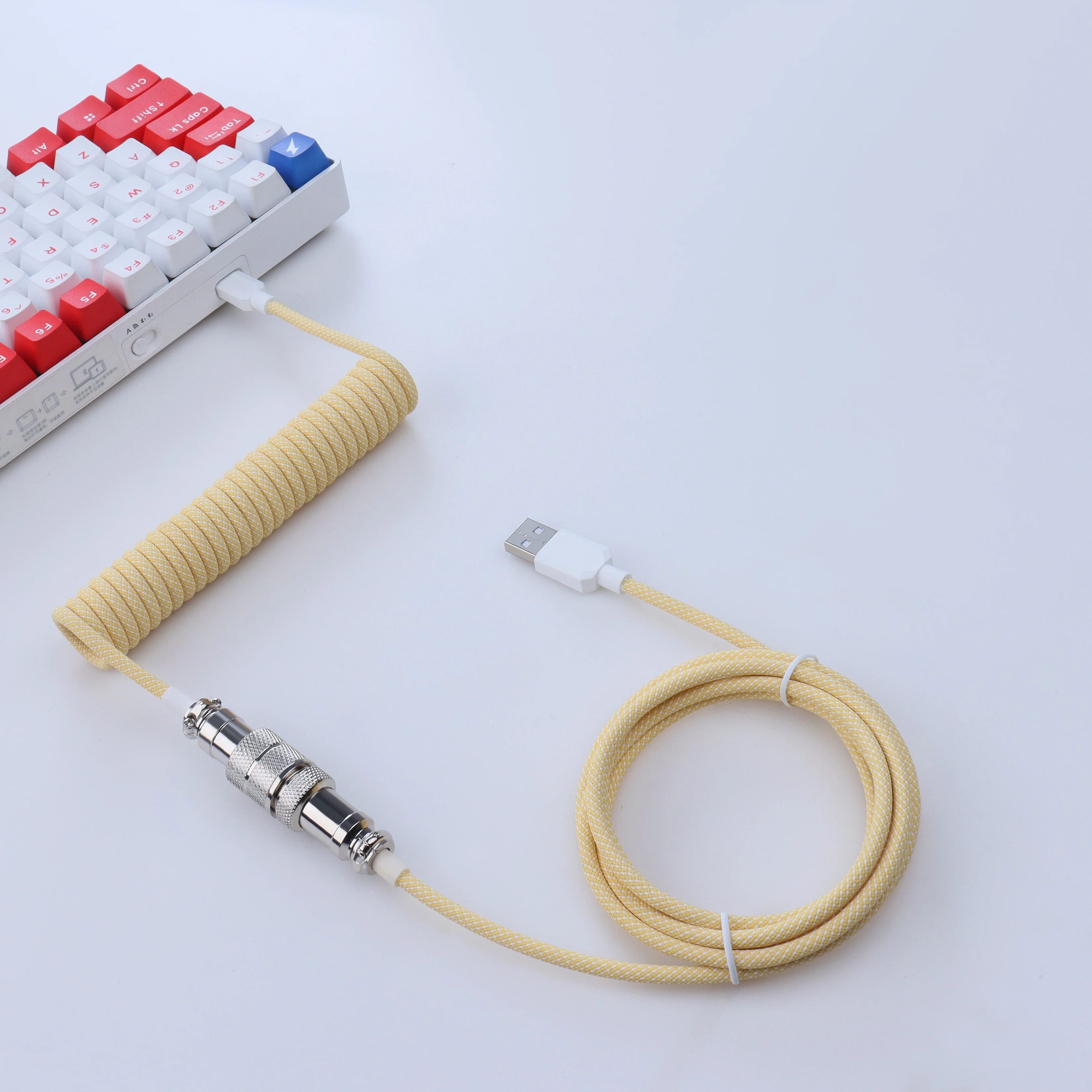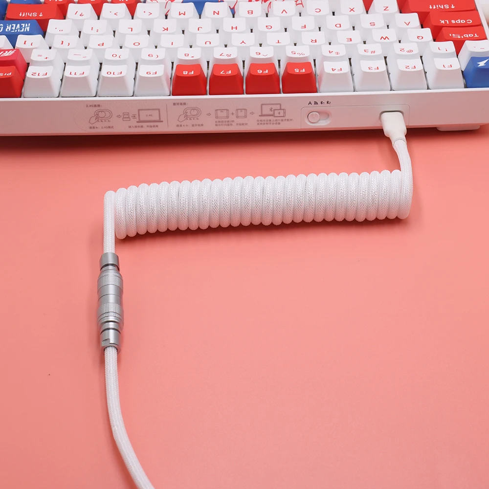 LANO, teclado mecánico para juegos en espiral, Usb C, Cable de bobina colorido, conector de aviador, Teclado en espiral, Cable GX16 de aviación