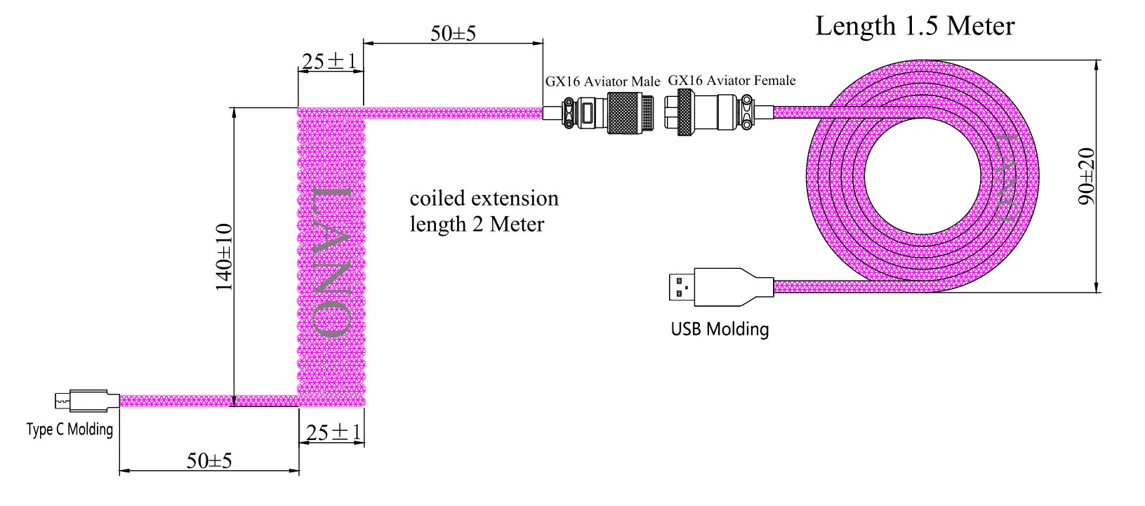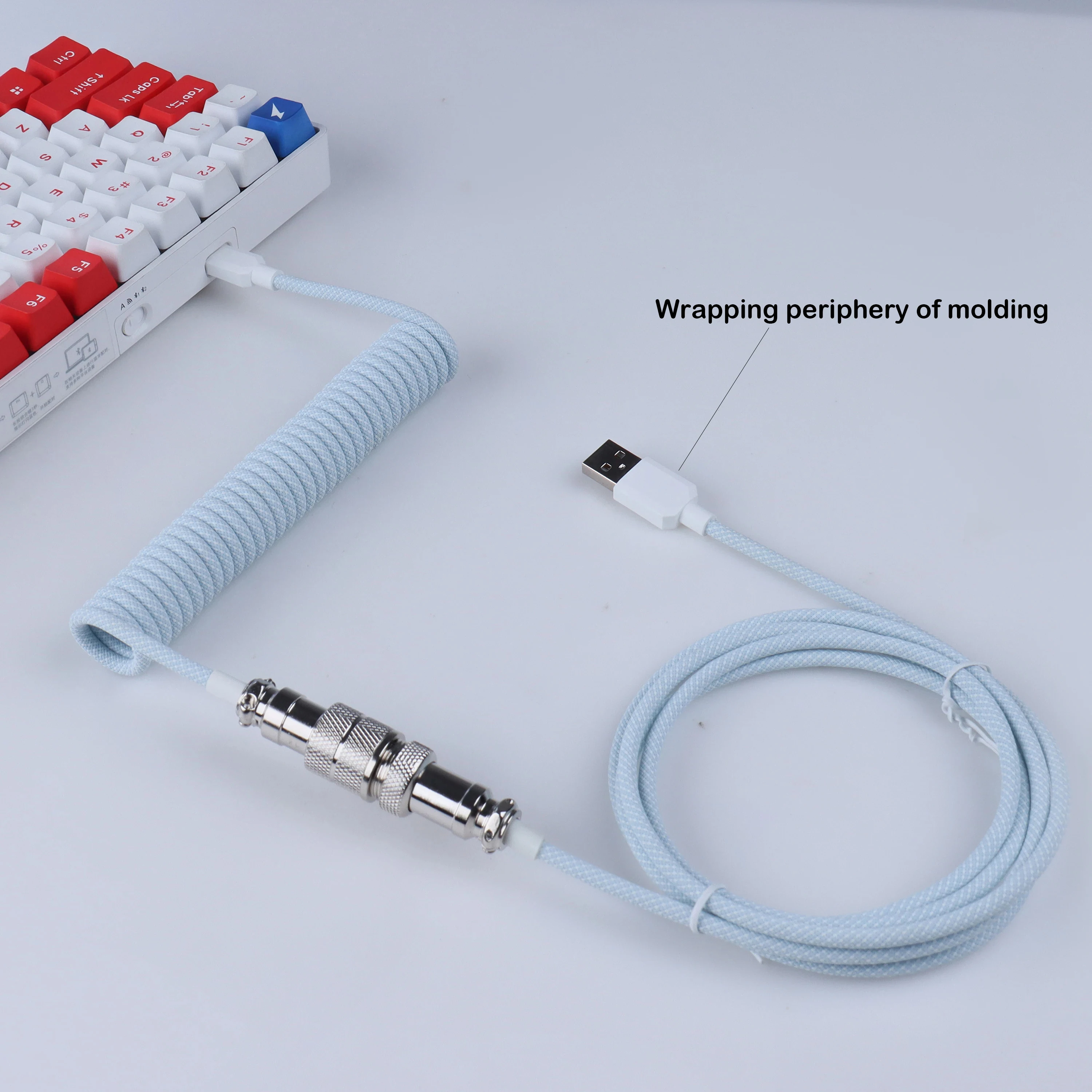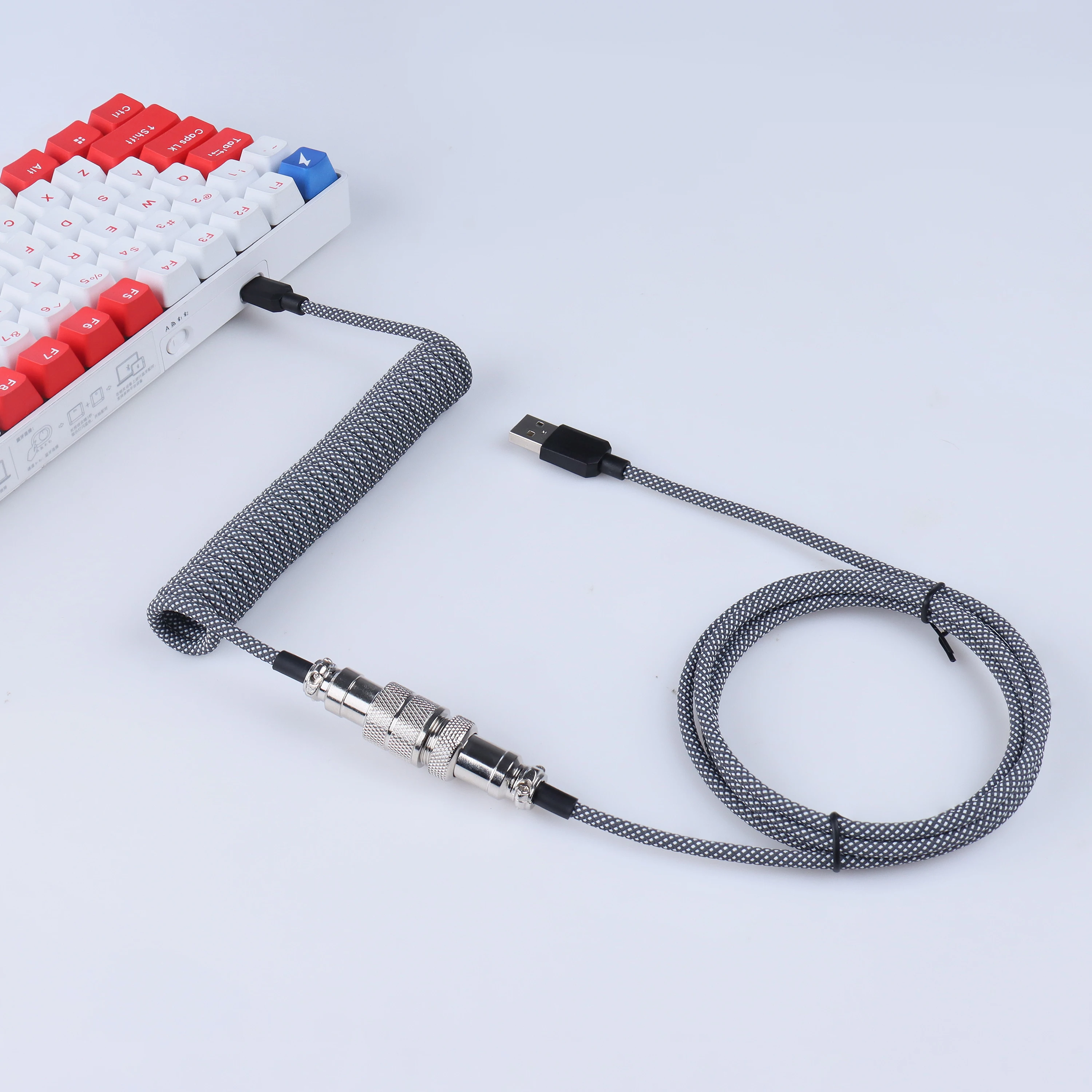 LANO, teclado mecánico para juegos en espiral, Usb C, Cable de bobina colorido, conector de aviador, Teclado en espiral, Cable GX16 de aviación