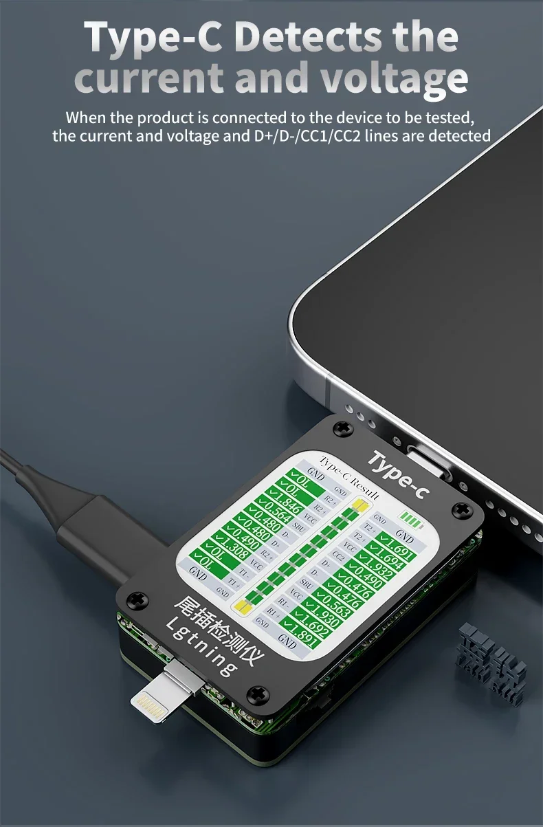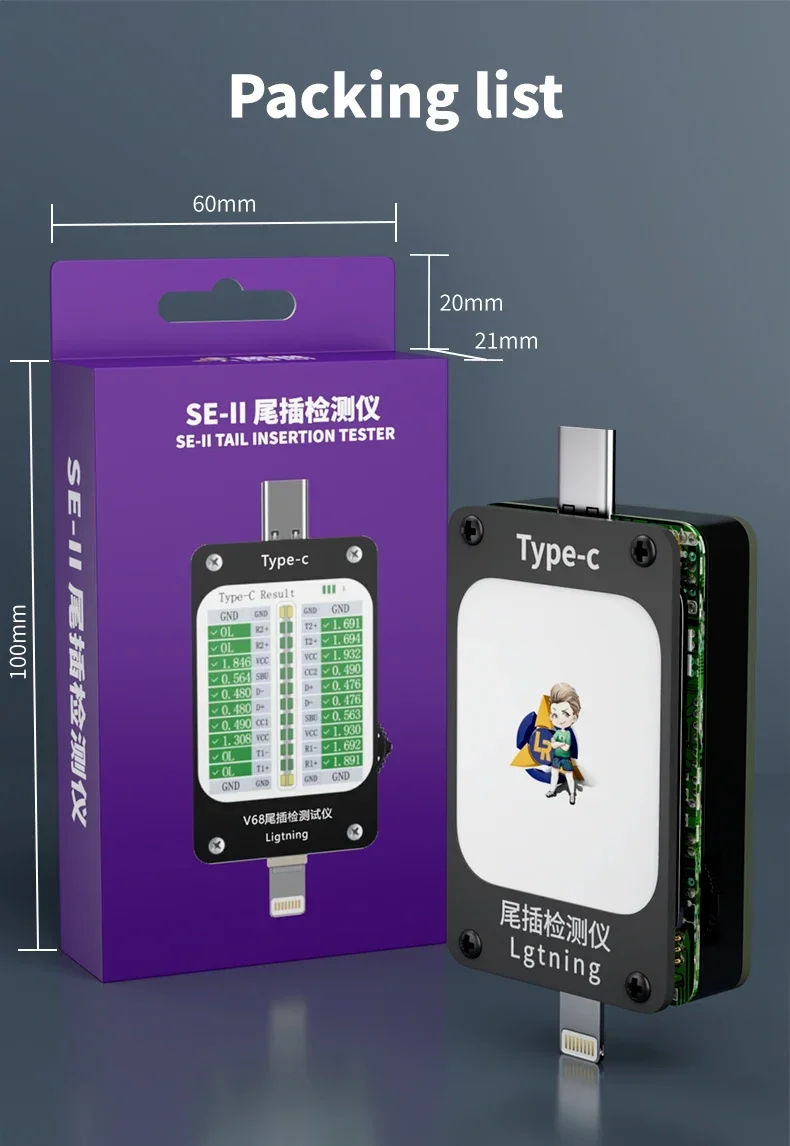 Lanrui SE-II Detector automático de enchufe trasero TYPE-C Interfaz de rayos para herramienta de detección de línea de voltaje de corriente de reparación de PC de teléfono