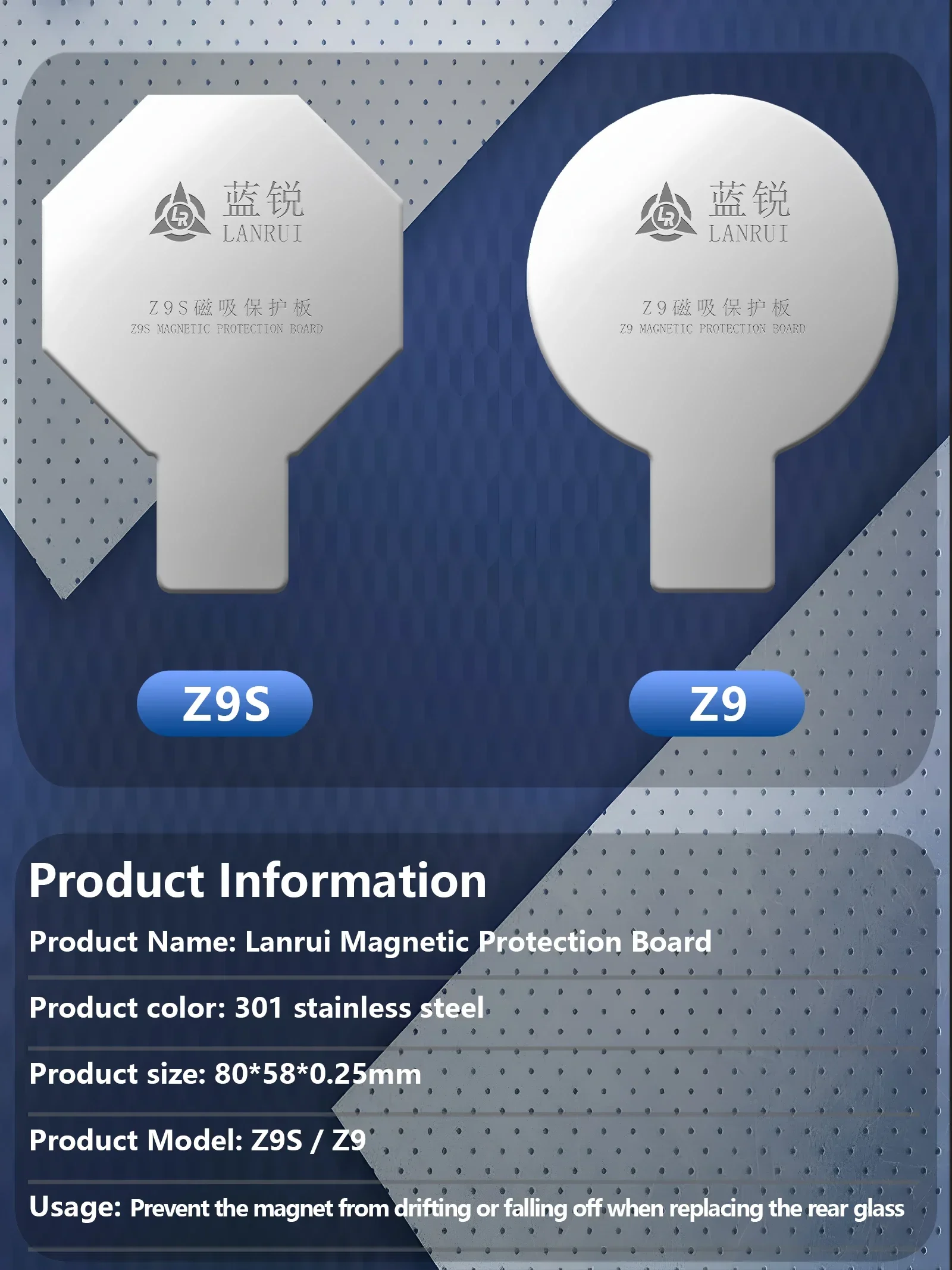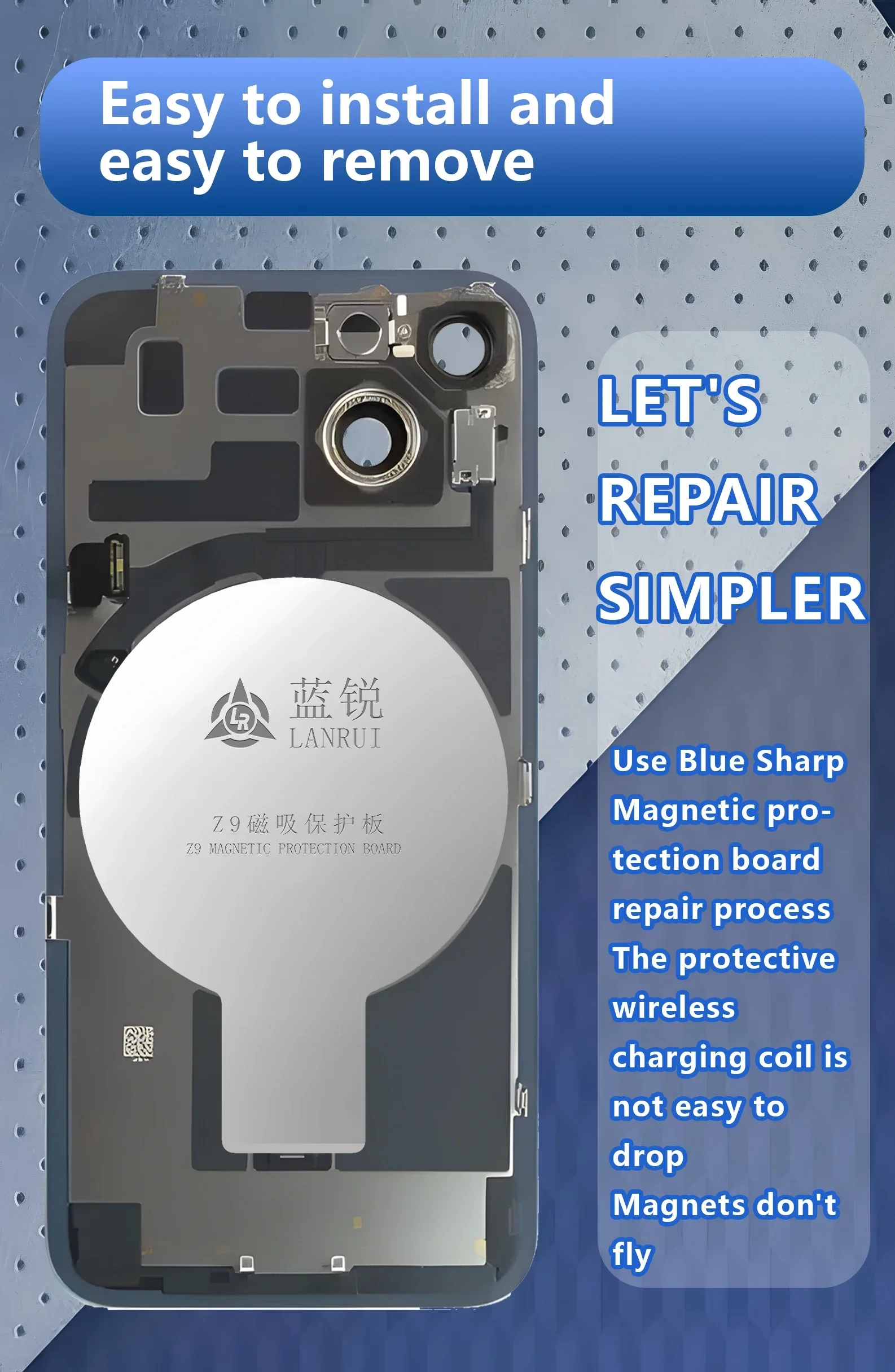 Lanrui Z9 / Z9S Placa de protección magnética de vidrio trasero Universal para IPhone 11-16 Pro Max Placa de protección de área de carga inalámbrica