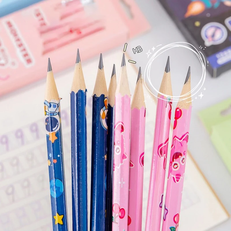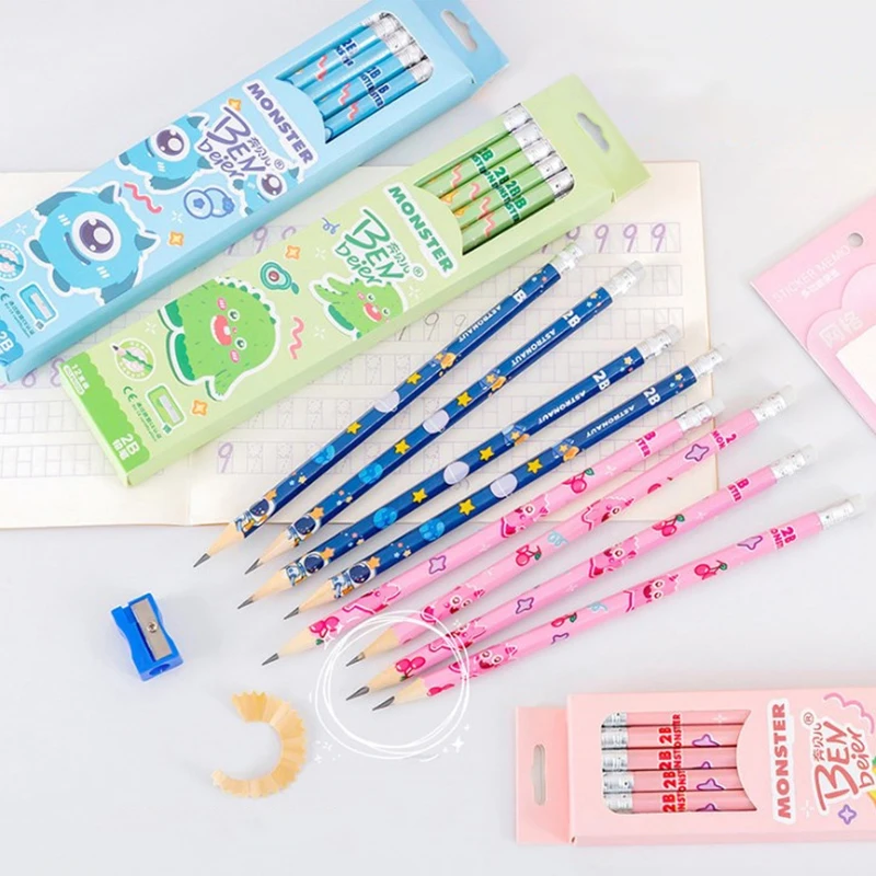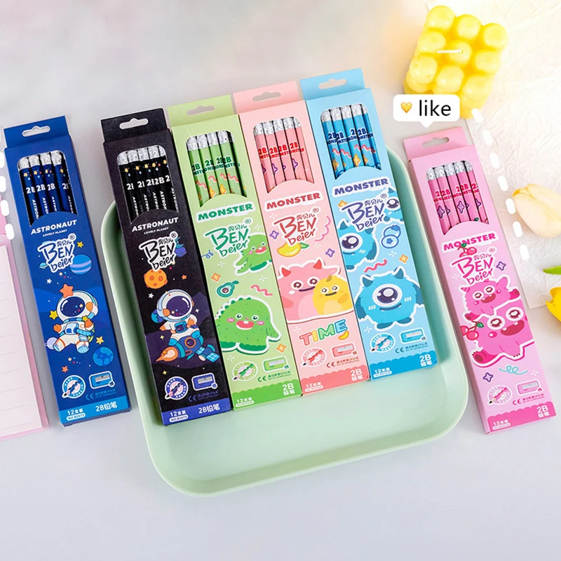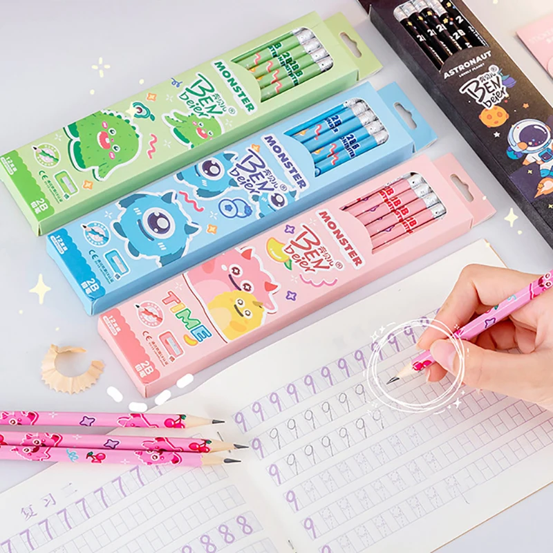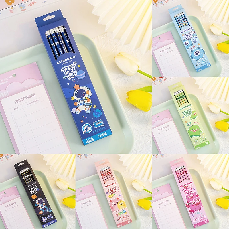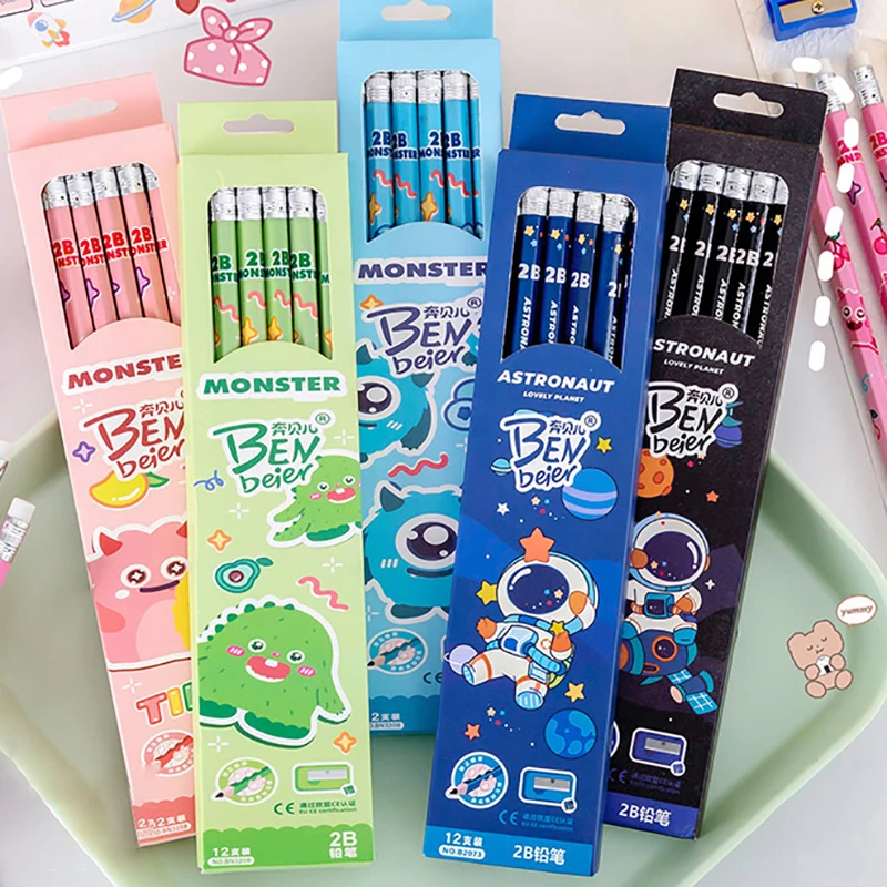 Comprar Lápices estándar con goma de borrar para la escuela, suministros de papelería bonitos para estudiantes, dibujo y escritura, animales Kawaii, 2B, 12 unidades por juego