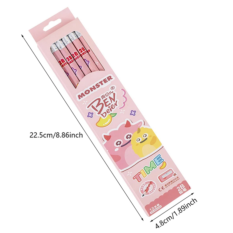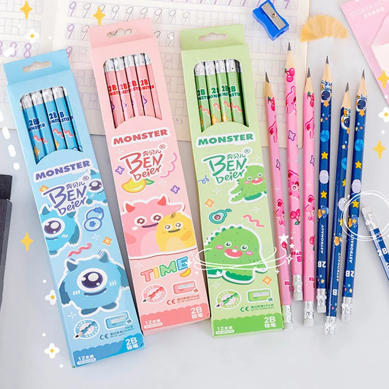 Comprar Lápices estándar con goma de borrar para la escuela, suministros de papelería bonitos para estudiantes, dibujo y escritura, animales Kawaii, 2B, 12 unidades por juego