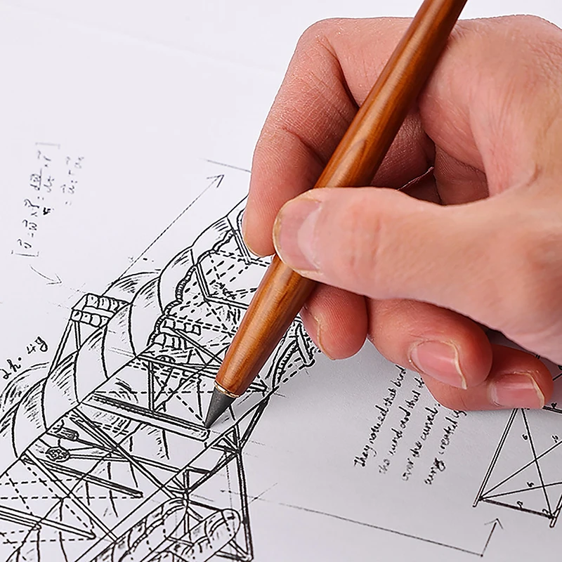 Comprar Lápiz de boceto de Arte de dibujo para estudiantes, lápiz de madera maciza Retro, escritura HB ilimitada, Punta reemplazable, papelería Kawaii