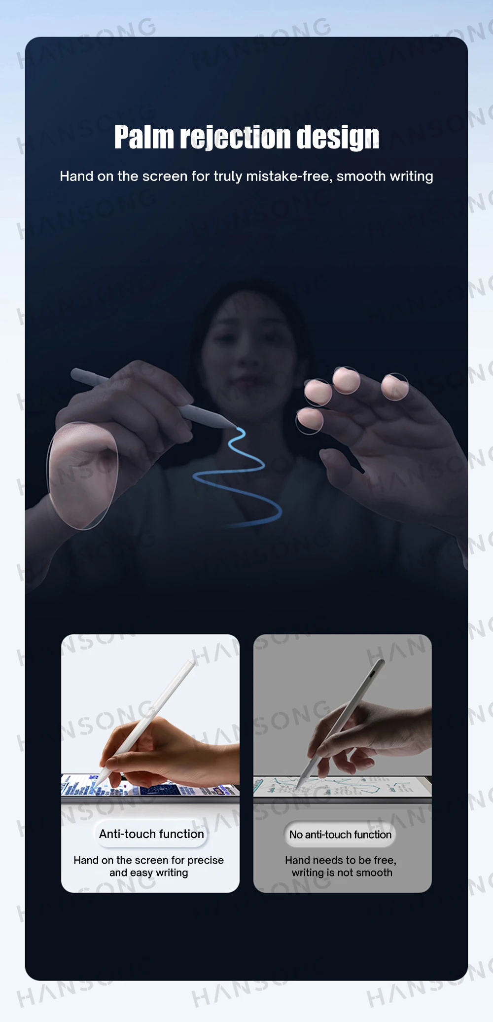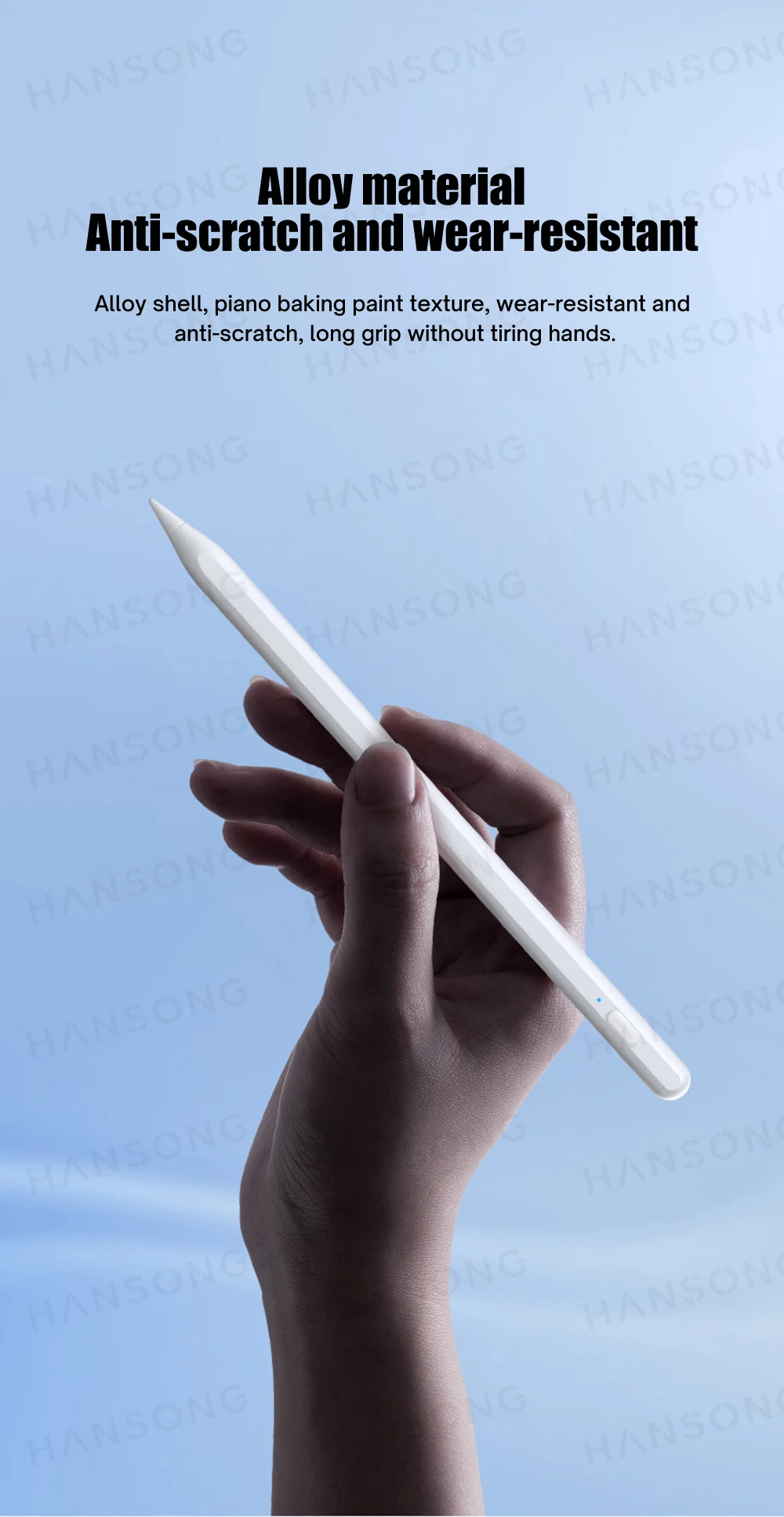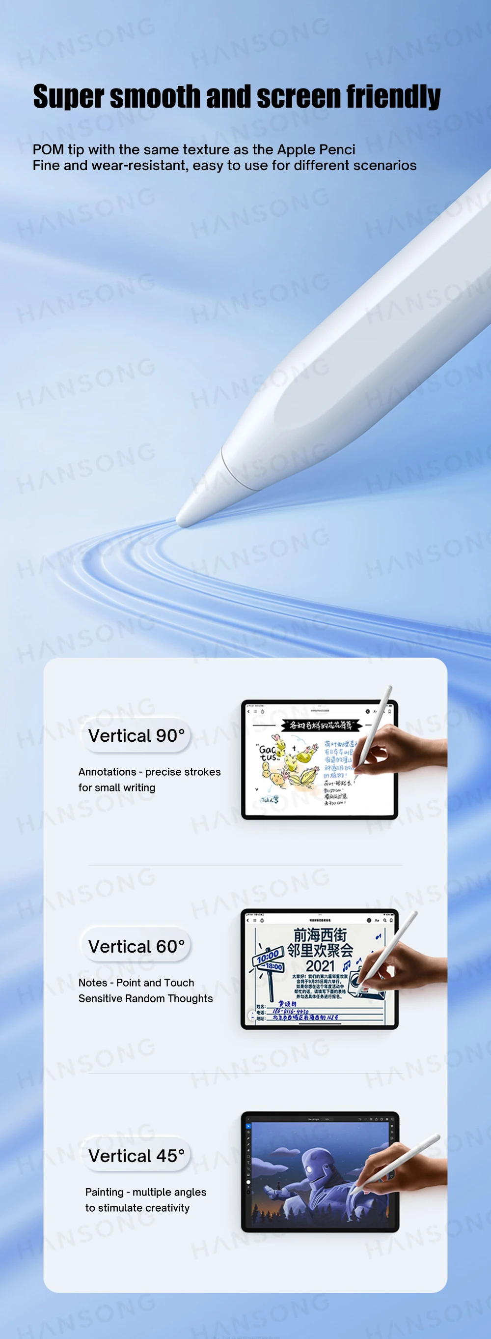 Punta de POM con la misma textura que el Apple Pencil Fina y resistente al desgaste, fácil de usar para diferentes escenarios.
