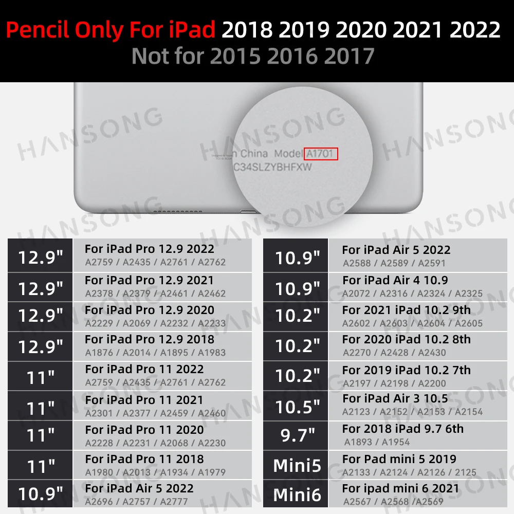 Comprueba el modelo de tu iPad antes de comprar. Si no está seguro, puede ponerse en contacto con la tienda para su verificación. Solo es adecuado para iPads lanzados en 2018-2022, y otros modelos no son aplicables.