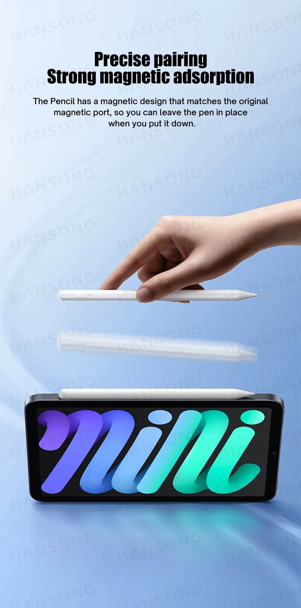 El lápiz tiene un diseño magnético que coincide con el puerto magnético original, por lo que puede dejar el lápiz en su lugar cuando lo coloque.