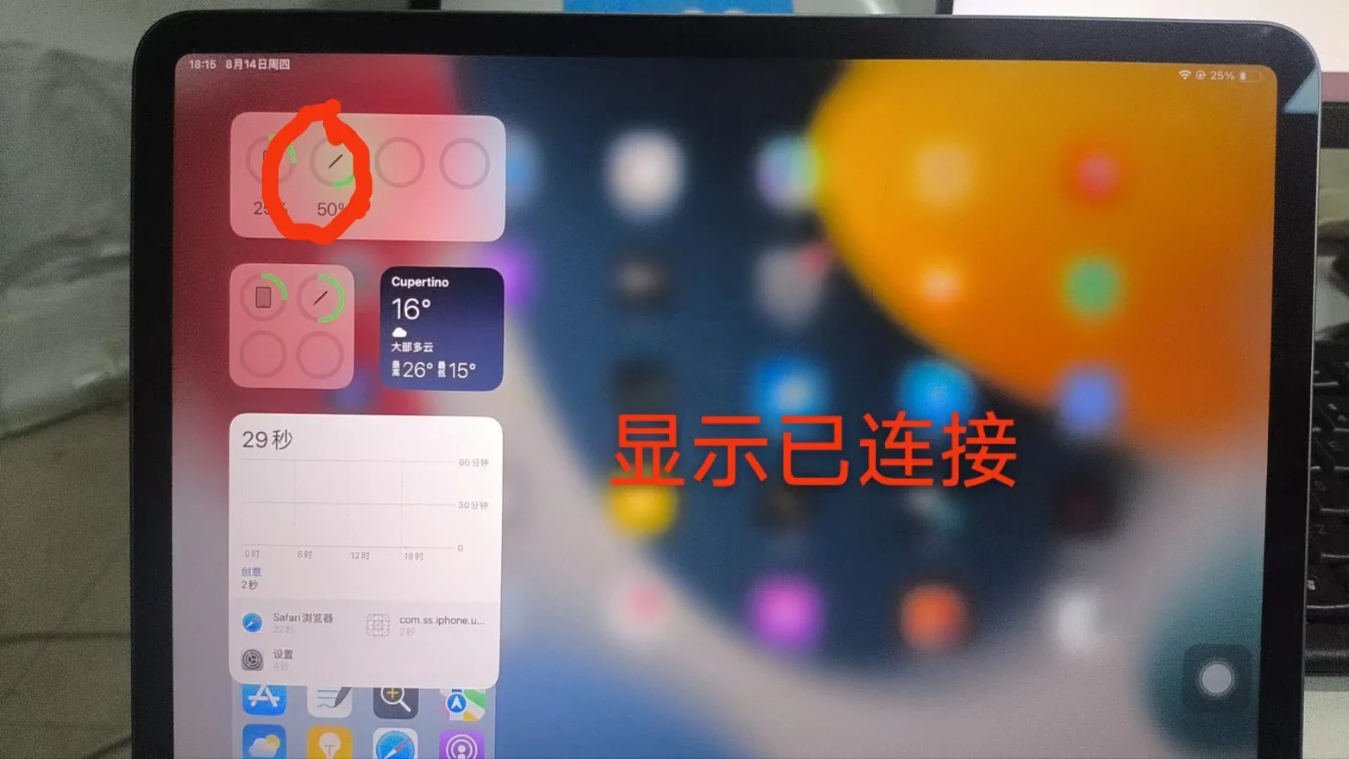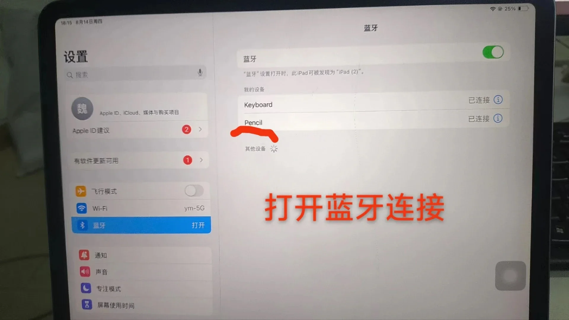 4.El icono del lápiz aparece en la tableta que indica una conexión exitosa;