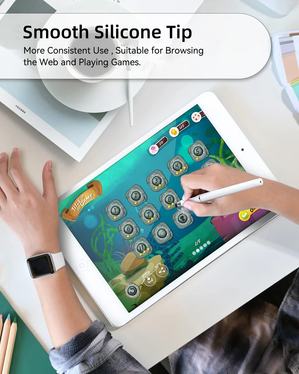 Compatible con la mayoría de los dispositivos de pantalla capacitiva, como iPad, iPhone y Android Windows.