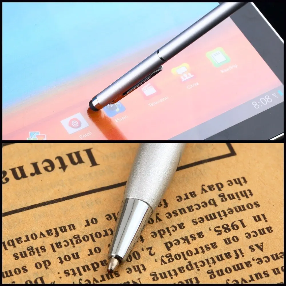 ¡EN STOCK! Stylus de pantalla táctil de cristal capacitivo Universal de acero inoxidable 2 en 1 y bolígrafo para Tablet PC Phone
