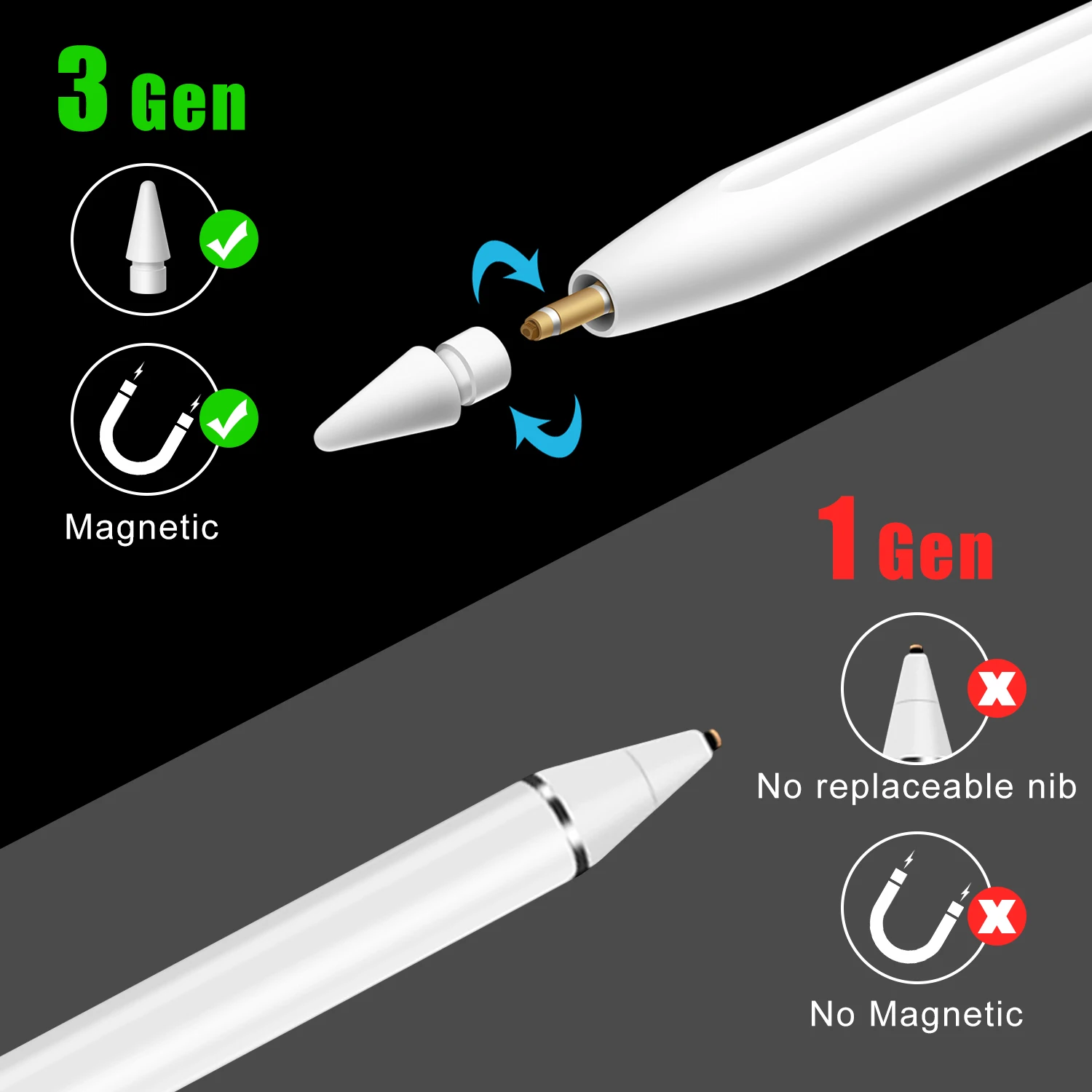 Lápiz de 3.ª generación: con imán, conectado a la cara lateral del iPad Pro 11 12.9 2018 y 2020, ya no se pierde ni rueda, es más portátil y más fácil de organizar.