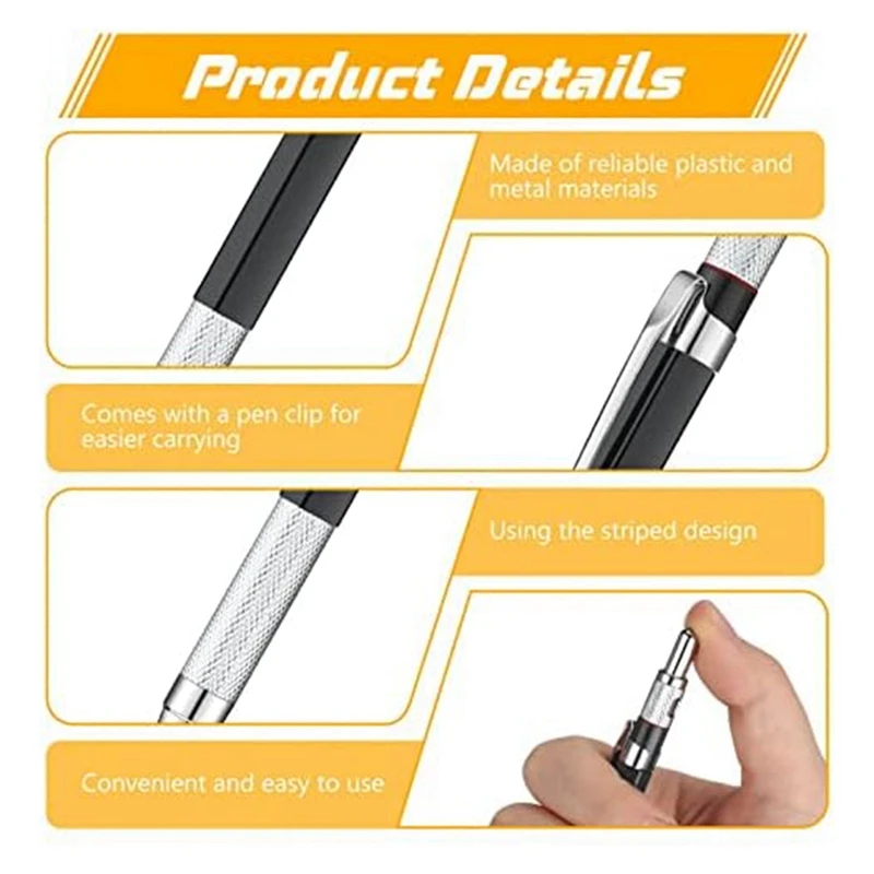 Diseños bien pensados: el lápiz marcador de metal presenta el diseño del soporte, fácil de sujetar en su cuaderno o bolsillo sin perder, y el diseño del lápiz mecánico puede permitirle usar conveniente y rápidamente