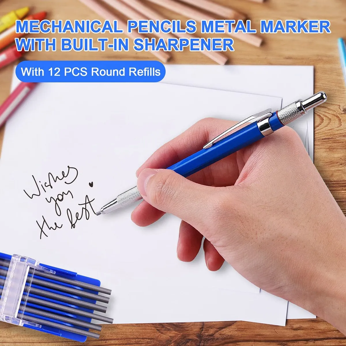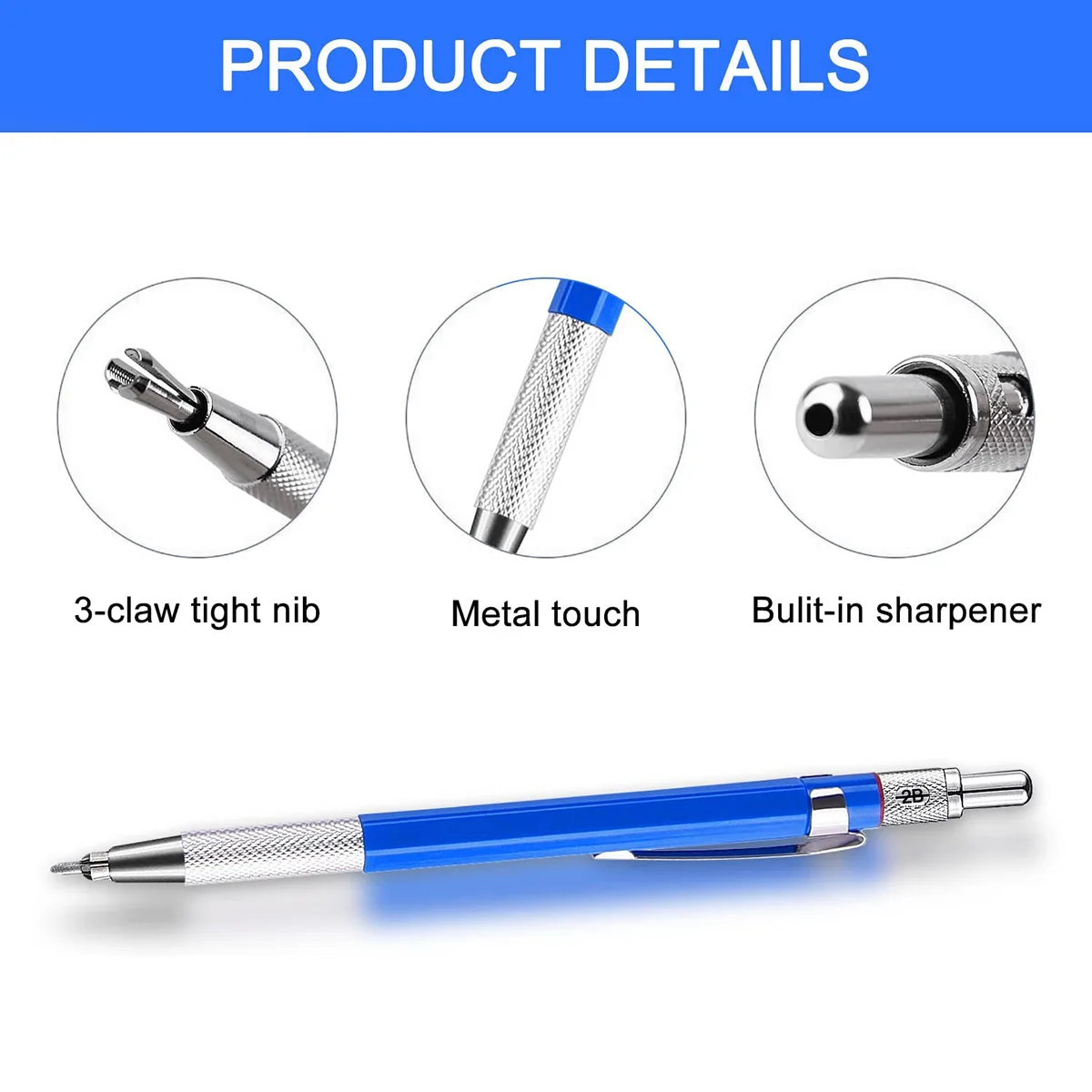 Duradero: El lápiz mecánico incorporado sacapuntas y clip para un fácil almacenamiento, el recambio de plata es fuerte y difícil de romper, duradero y se puede utilizar durante mucho tiempo