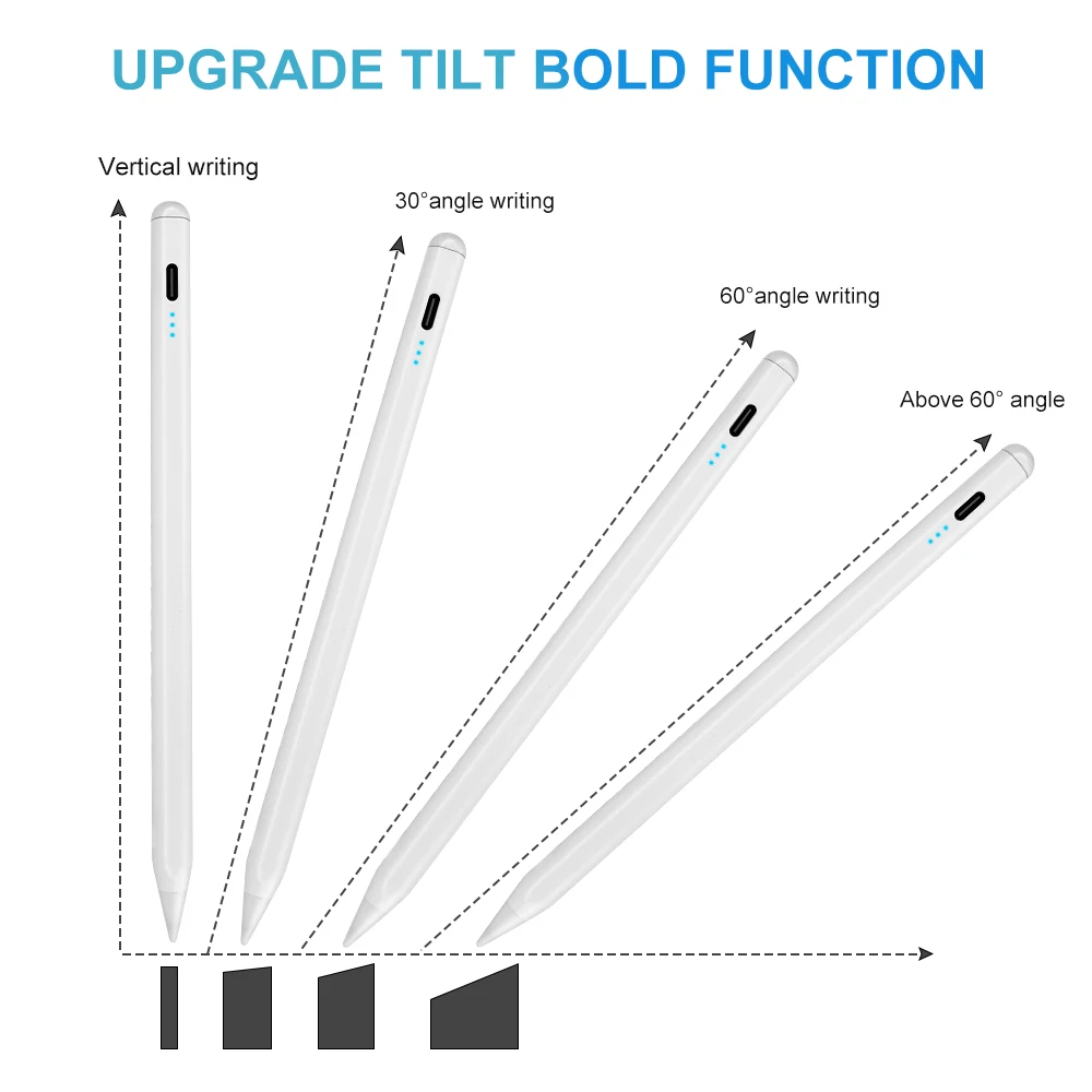 El lápiz óptico se puede inclinar en diferentes ángulos para dibujar diferentes trazos de grosor y profundidad, perfecto para dibujar. Escritura precisa del control de puntos, sin arañazos en la pantalla, ¡sin retraso/compensación/rotura! Mayor sensibilidad, sin resistencia y más cómodo en la mano en comparación con el lápiz óptico normal.