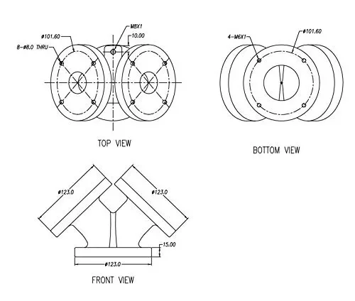 Adaptador 1,5 "lado 4,72" diámetro: 4 agujeros de perno en círculo de 4"