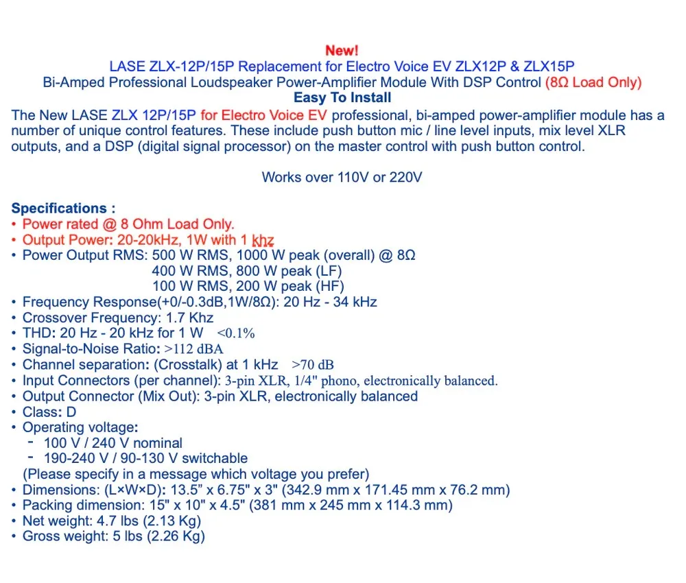 Comprar LASE-Reemplazo de altavoz ZLX-12P/15P para Electro Voice, módulo amplificador de potencia profesional