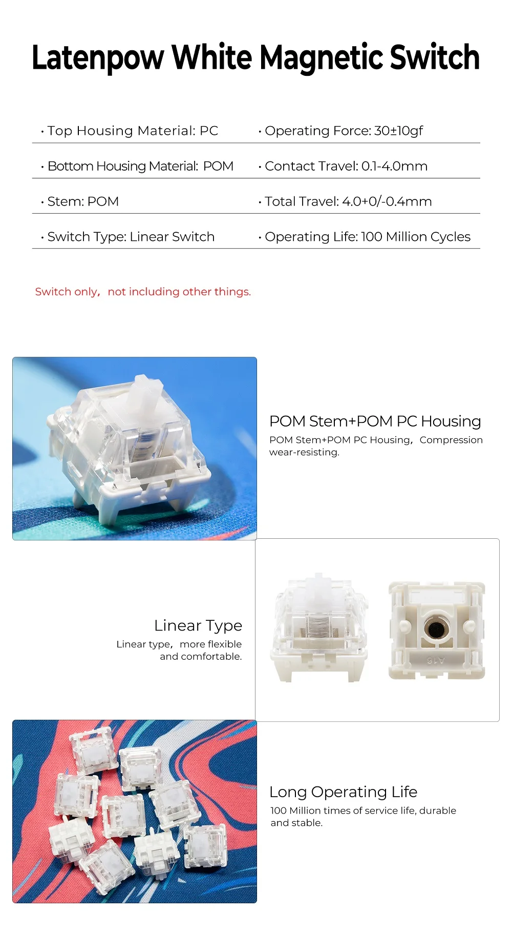 Comprar Latenpow interruptor blanco magnético lineal para teclado mecánico magnético 30gf POM PC solo para Looting60 Looting68
