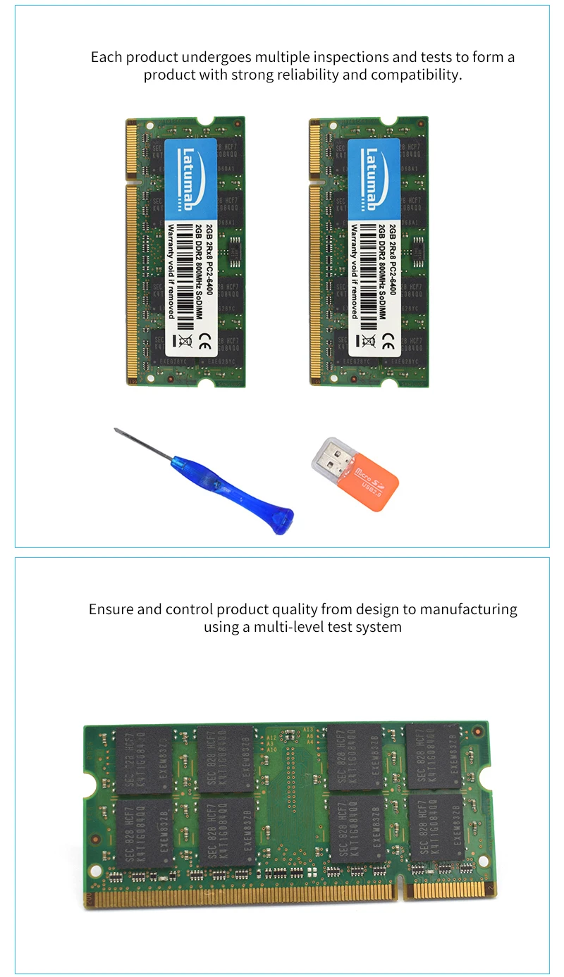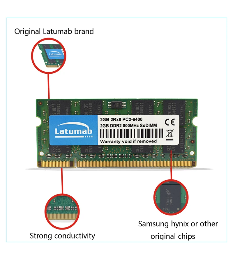 Latumab DDR2 1GB 2GB 4GB RAM Memoria para computadora portátil 800MHz Memoria para PC Módulo de memoria para computadora portátil So Dimm RAM