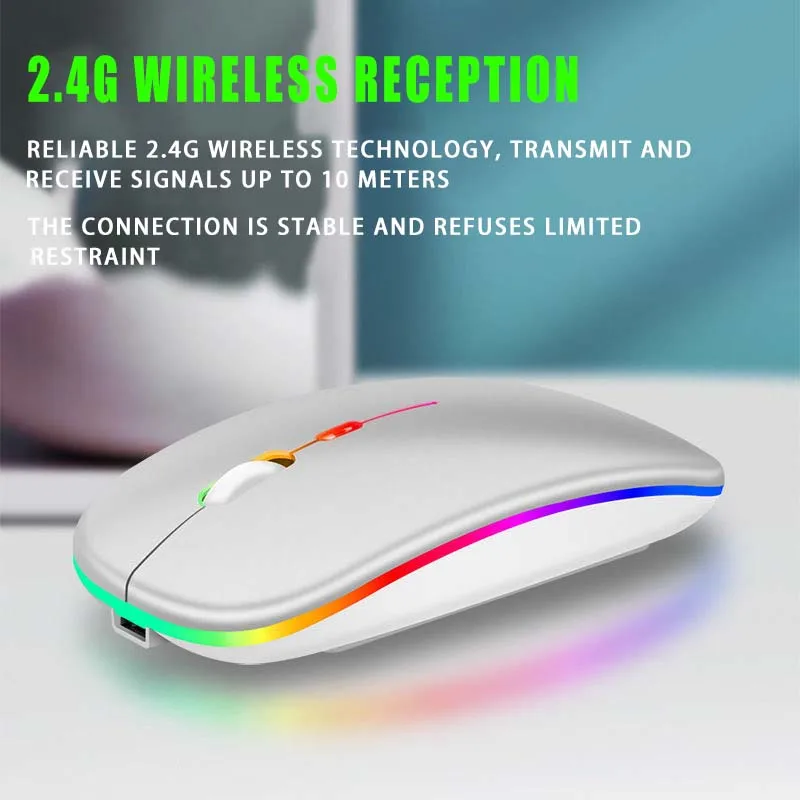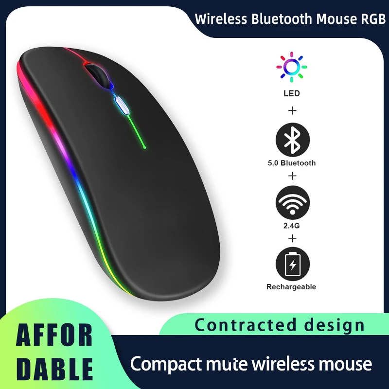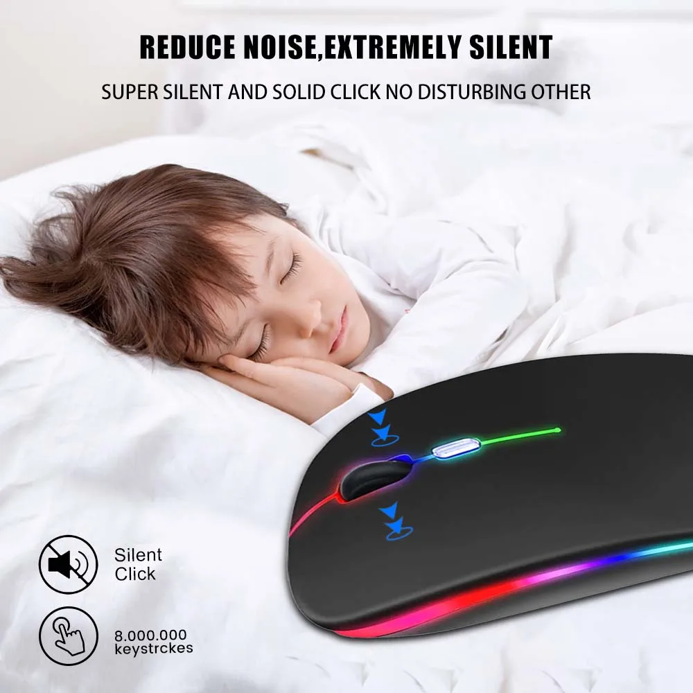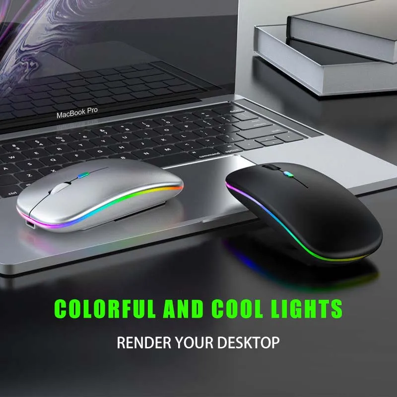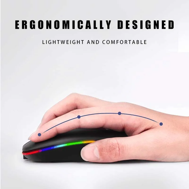 Ratón inalámbrico Bluetooth, ratón recargable RGB, ratón inalámbrico para ordenador Mause, retroiluminación LED, ratón ergonómico para juegos para ordenador portátil de escritorio