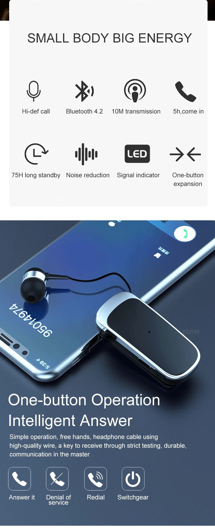 • 10 horas de conversación/tiempo de músicaNo se preocupe por quedarse sin batería con 10 horas de tiempo de conversación/música, perfecto para largos viajes o días de trabajo.