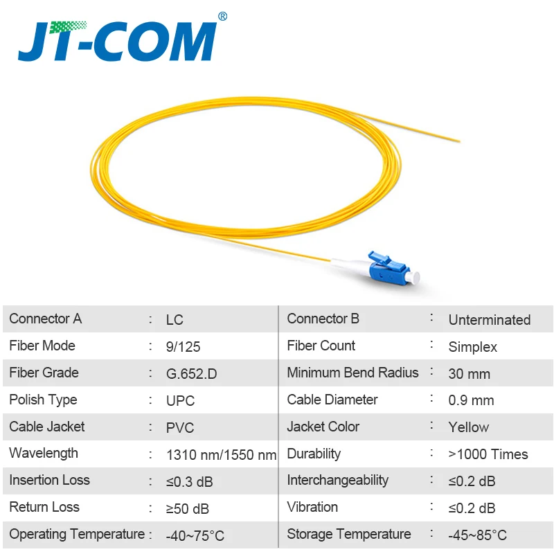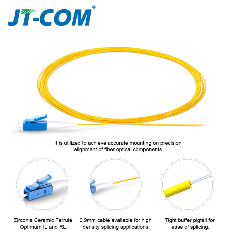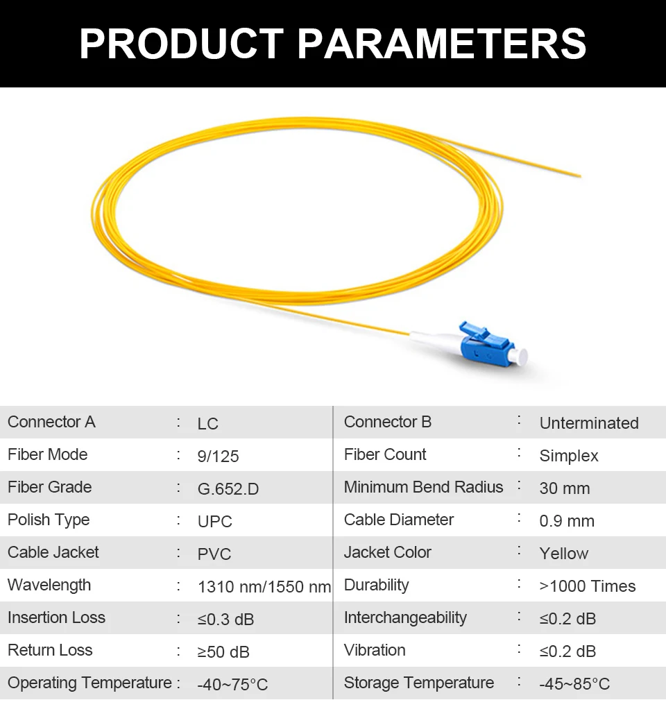Comprar LC UPC coleta de fibra óptica Simplex 0,9mm 9/125 modo único LC UPC 1 núcleo coleta de fibra óptica 1,5 m 50/100/200 Uds