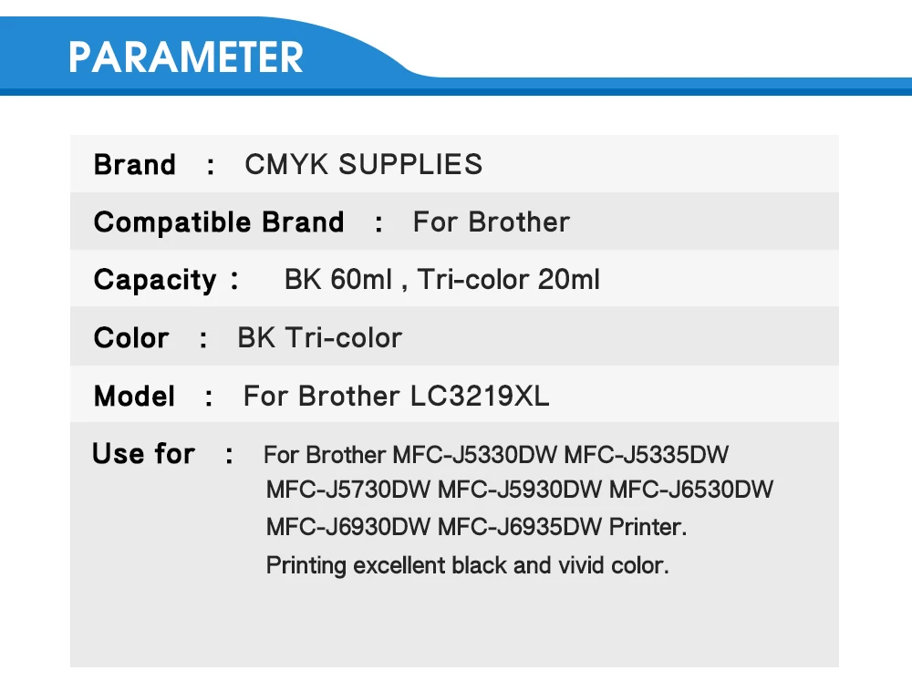 Cartuchos de tinta para Brother LC3219XL MFC-J5330DW MFC-J5335DW MFC-J5730DW MFC-J5930DW MFC-J5330DW MFC-J5335DW MFC-J5730DW MFC-J5930DW MFC-J6530DW MFC-J6930DW Impresora MFC-J6935DW.