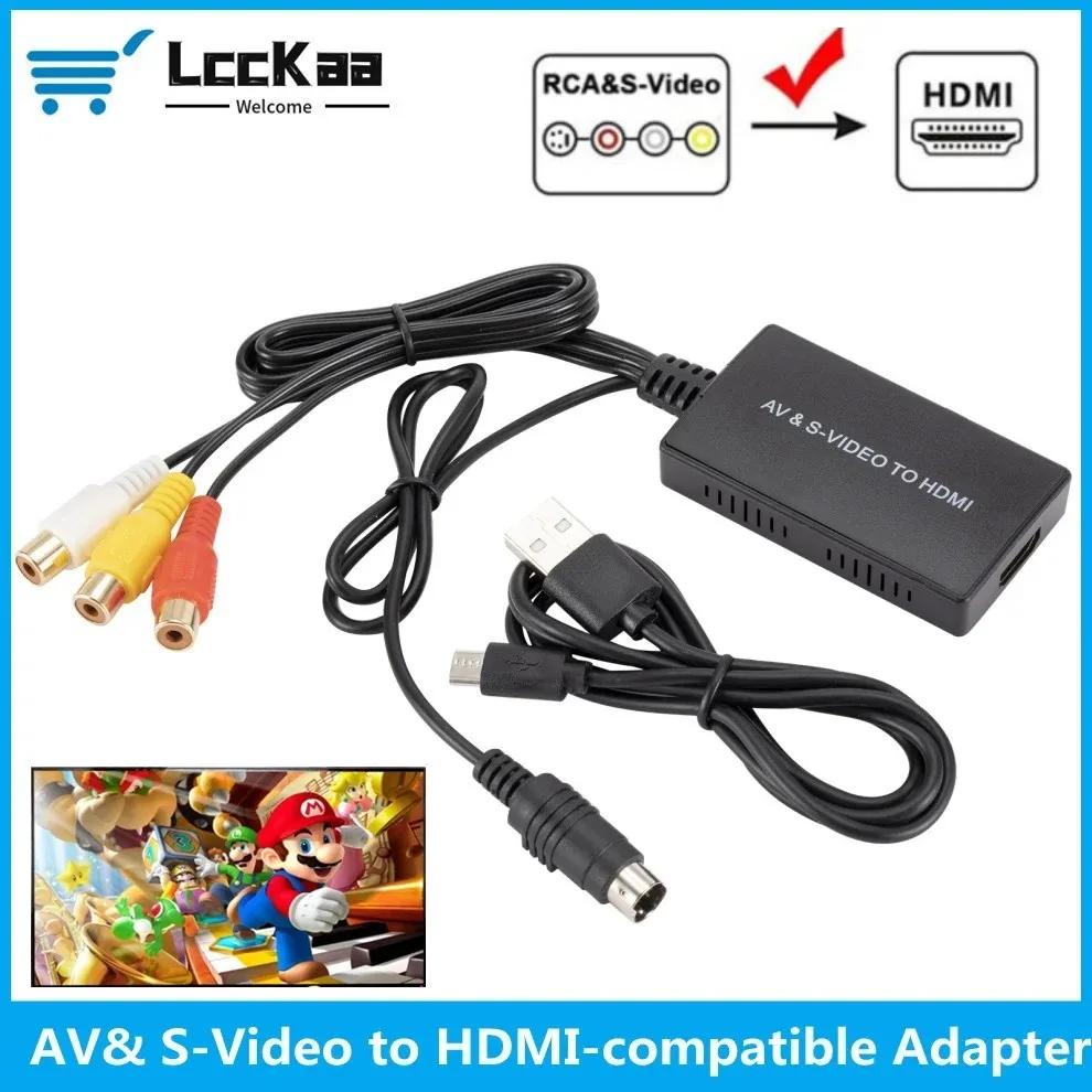 Comprar LccKaa 1080P AV RCA CVBS SVideo a adaptador compatible con HDMI para HDTV DVD STB, Compatible con PS2/PS3 AV S-VIDEO convertidor de vídeo