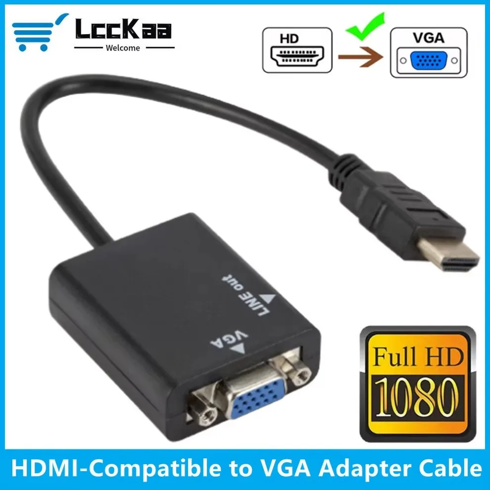 Comprar LccKaa 1080P compatible con HDMI a VGA macho a hembra adaptador Cable convertidor para PC portátil TV Box proyector de pantalla de ordenador